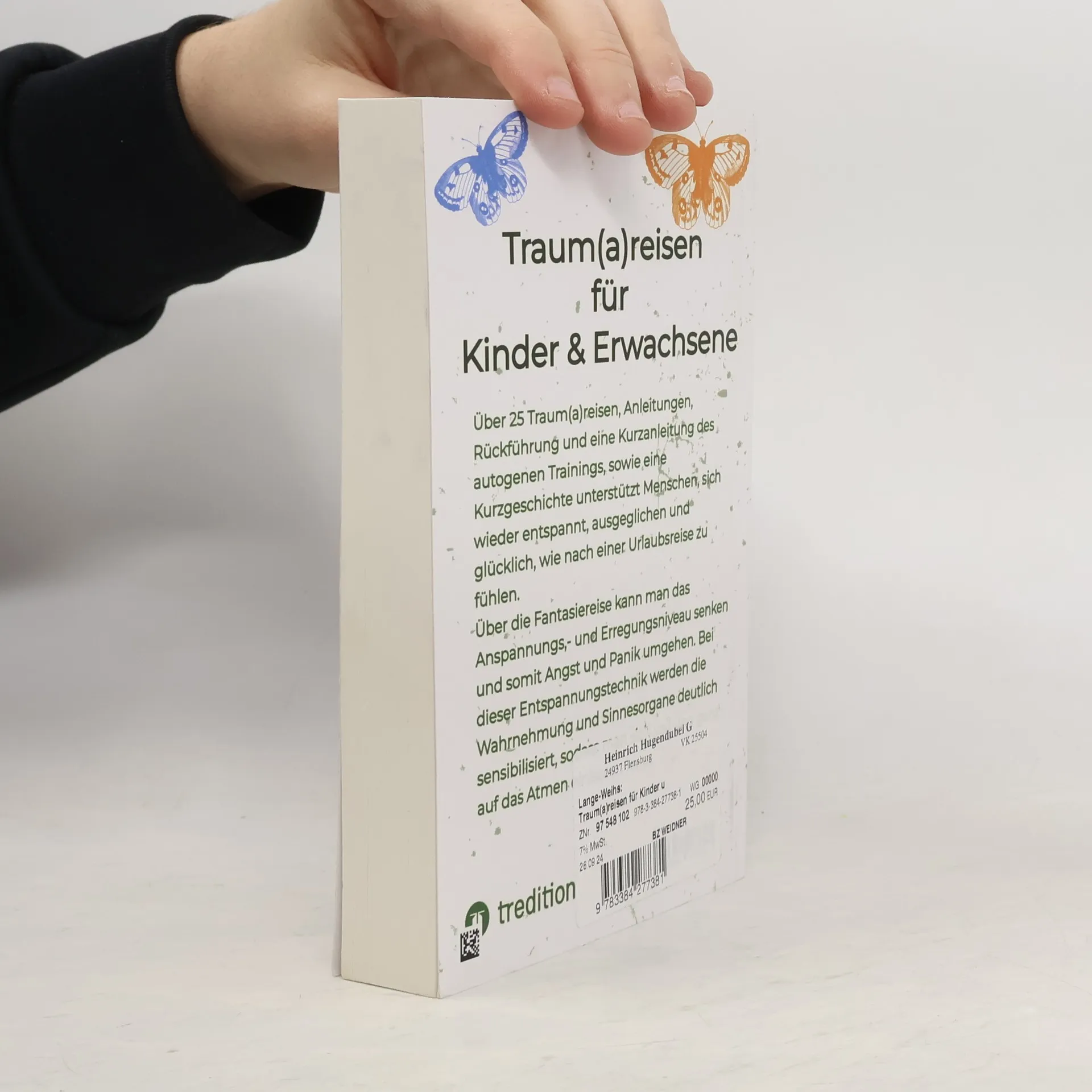 Über 25 Traum(a)reisen, Anleitungen, Rückführung und eine Kurzanleitung des autogenen Trainings, sowie eine Kurzgeschichte unterstützt Menschen, sich wieder entspannt, ausgeglichen und glücklich, wie nach einer Urlaubsreise zu fühlen. Über die Fantasiereise kann man das Anspannungs,- und Erregungsniveau senken und somit Angst und Panik umgehen. Bei dieser Entspannungstechnik werden die Wahrnehmung und alle Sinnesorgane deutlich sensibilisiert, sodass man sich voll und ganz auf das Atmen einlassen kann. Inhaltsverzeichnis - 1. Wer bin ich, 2. Vorstellung der Selbsthilfetechnik, 3. Erklärungen / Fachbegriffe, 4. Was ist ein Trauma, 5. Symptome, die mit einem Trauma im Zusammenhang stehen, 6. Dissoziation durch traumatische Erlebnisse, 7. Angst durch traumatische Ereignisse, 8. Wiedererleben traumatischer Ereignisse, 9. Wut durch traumatische Ereignisse, 10. Ohnmacht durch traumatische Ereignisse, 11. Indikationen – Kontraindikationen, 12. Achtsame Distanzierung, 13. Neutralisieren des Traumas bei der Reise, 14. Atementspannung erlernen, 15. Körperhaltung für eine Atementspannung, 16. Vorbereitung zur Entspannungsübung, 17. Durchführung der Atementspannung, 18. Vorstellung aller Traum(a)reisen: 1. Elfenland, 2. Erdbeerkind, 3. Sommerwiese, 4. Fluss, 5. Elefanten, 6. Meer, 7. Musikkonzert, 8. Berg, 9. Schmetterling, 10. Segelboot, 11. Engel, 12. Lebensbaum, 13. Feenzauber, 14. Einhorn, 15. Luftballon, 16. Wassernixe, 17. Teppich, 18. Delfine, 19. Phönix, 20. Leuchtturm, 21. Wildpferde, 22. Marienkäfer, 23. Dschungel, 24. Harfe, 25. Zauberer, 19. Einleitungstext (für alle Reisen) 20. Die erste Traumreise, 21. Rückführung, 22. Durchführung der Entspannungsübung AT, 23. Der Zauberfrosch Ferdinant, 24. Danksagung – Nachwort