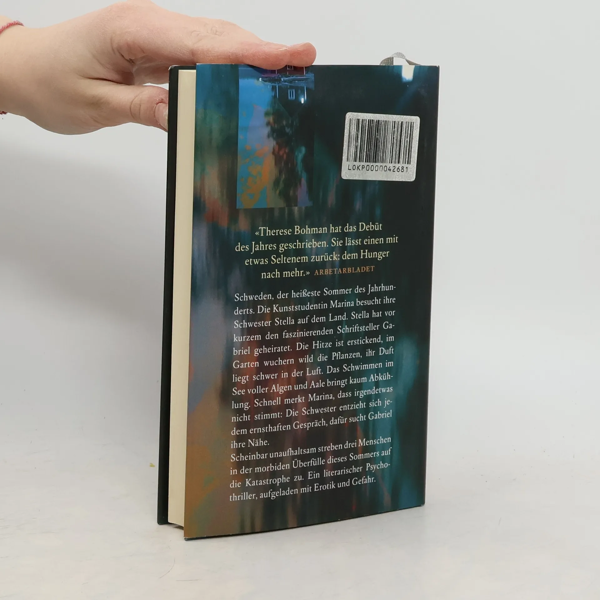 Über Schweden liegt brütende Hitze. Die Kunststudentin Marina ist bei ihrer Schwester Stella und deren Ehemann Gabriel zu Besuch auf dem Land. Doch nicht nur die Hitze lastet auf dem Haus im üppigen Garten, sondern auch eine merkwürdige Beklemmung. Die beneidenswert schöne Stella wirkt seltsam bedrückt, doch sie öffnet sich Marina nicht. Der berühmte Schriftsteller Gabriel dagegen sucht immer wieder Stellas Nähe. Er interessiert sich für die Kunst der Präraffaeliten, vor allem für das Motiv der Ertrunkenen. Marina fühlt sich von seiner Aufmerksamkeit geschmeichelt und hat seiner Verführung nur wenig entgegenzusetzen. Da bemerkt sie beim Baden im See am Körper ihrer Schwester kleine Brandwunden. Es irritiert sie, dass die Nachbarn regelmäßig nach dem Rechten zu sehen scheinen. Geht von Gabriel eine Gefahr aus? Ein bildhaft erzählter Spannungsroman über eine Dreiecksbeziehung mit düsterer Bestimmung.