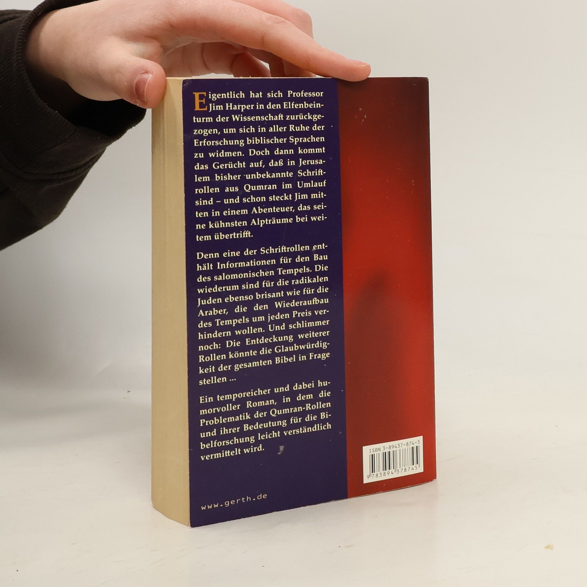 Professor Jim Harper zieht sich in die Forschung biblischer Sprachen zurück, wird jedoch durch das Gerücht über unbekannte Qumran-Schriftrollen in ein Abenteuer verwickelt. Eine Rolle enthält brisante Informationen zum Bau des salomonischen Tempels, die sowohl radikale Juden als auch Araber interessieren und die Glaubwürdigkeit der Bibel gefährden könnten.