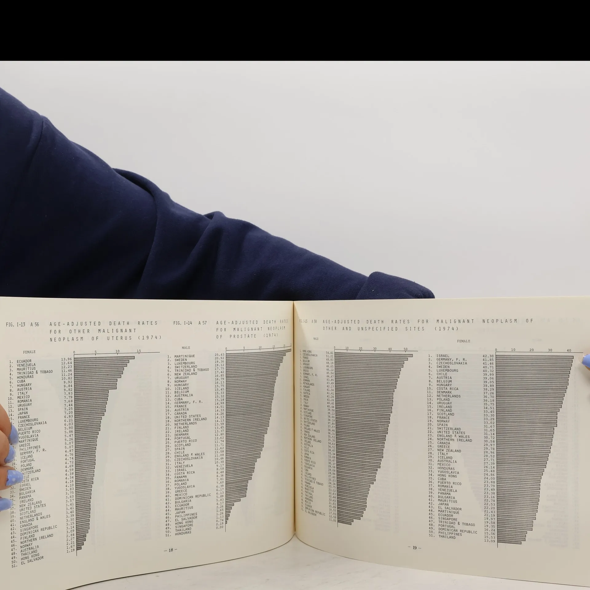 Age-Adjusted Death Rates for Cancer for Selected Sites (A-classification) in 51 countries in 1974, Various authors