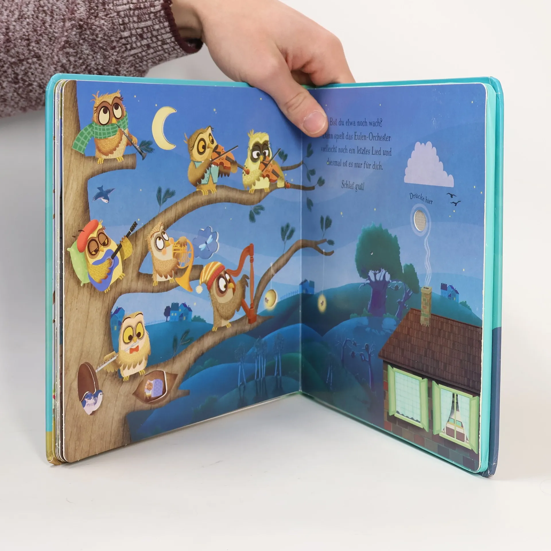 Zur Schlafenszeit gibt das Eulen-Orchester für alle Tierkinder und für dich ein Gute-Nacht-Konzert. Fünf bekannte Schlaflieder mit Melodien von Brahms, Mozart, Schubert, Chopin und Fauré sowie bezaubernde Illustrationen begleiten ins Land der Träume.
