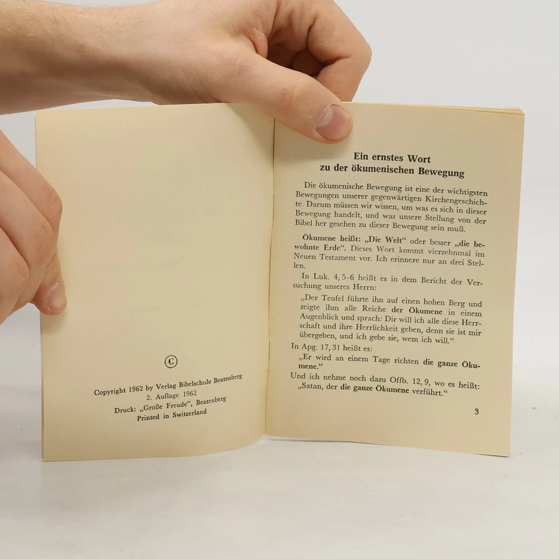 Ein ernstes Wort zu der Ökumenischen Bewegung