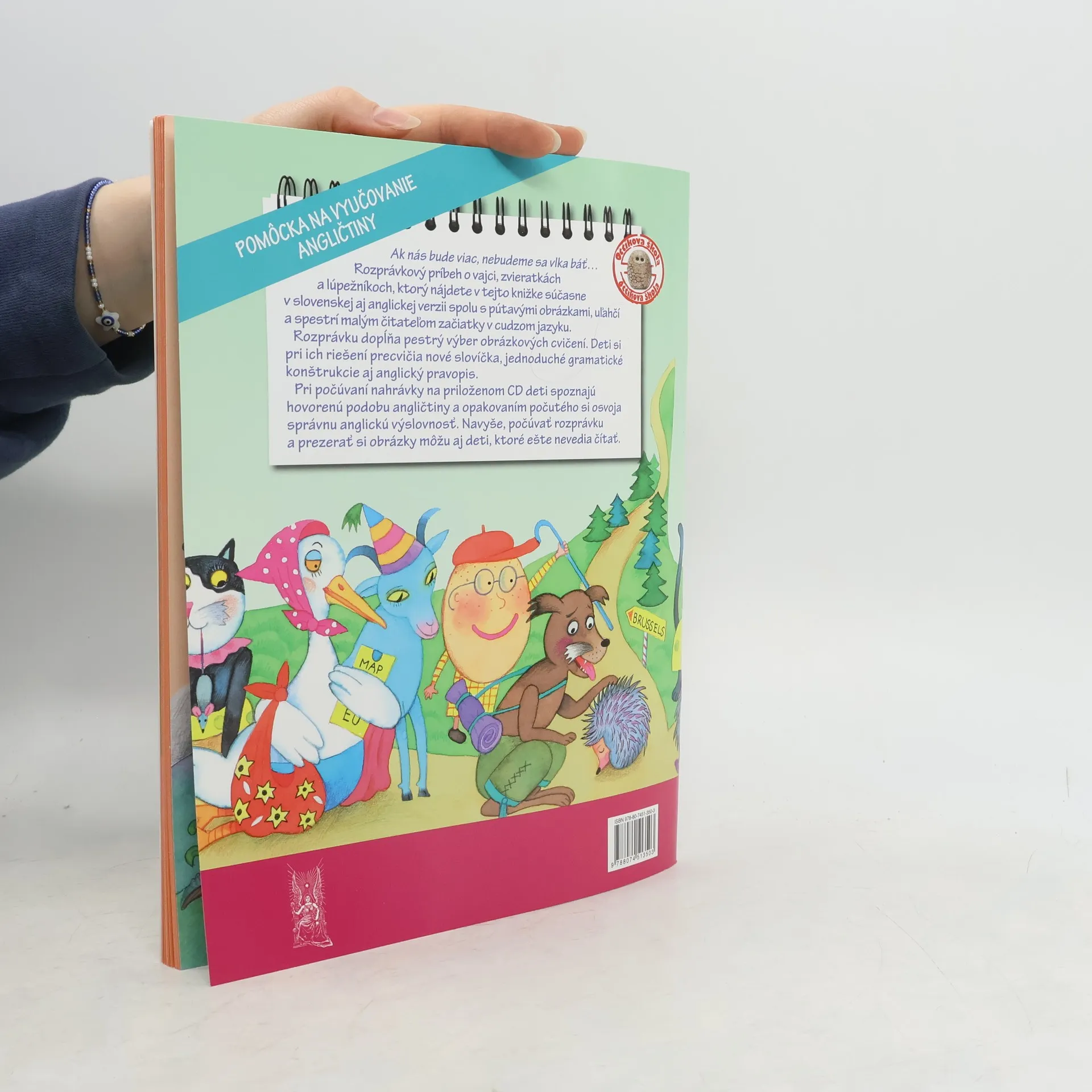 Ak nás bude viac, nebudeme sa vlka báť... Rozprávkový príbeh o vajci, zvieatkách a lúpežníkoch, ktorý nájdete v tejto knižke súčasne v slovenskej aj anglickej verzii spolu s pútavými obrázkami, uľahčí a spestrí malým čitateľom začiatky v cudzom jazyku. Rozprávku dopľňa pestrý výber obrázkových cvičení. Deti si pri ich riešení precvičia nové slovíčka, jednoduché gramatické konštrukcie aj anglický pravopis. Pri počúvaní nahrávky na priloženom CD deti spoznajú hovorenú podobu angličtiny a opakovaním počutého si osvoja správnu anglickú výslovnosť. Navyše, počúvať rozprávku a prezerať.