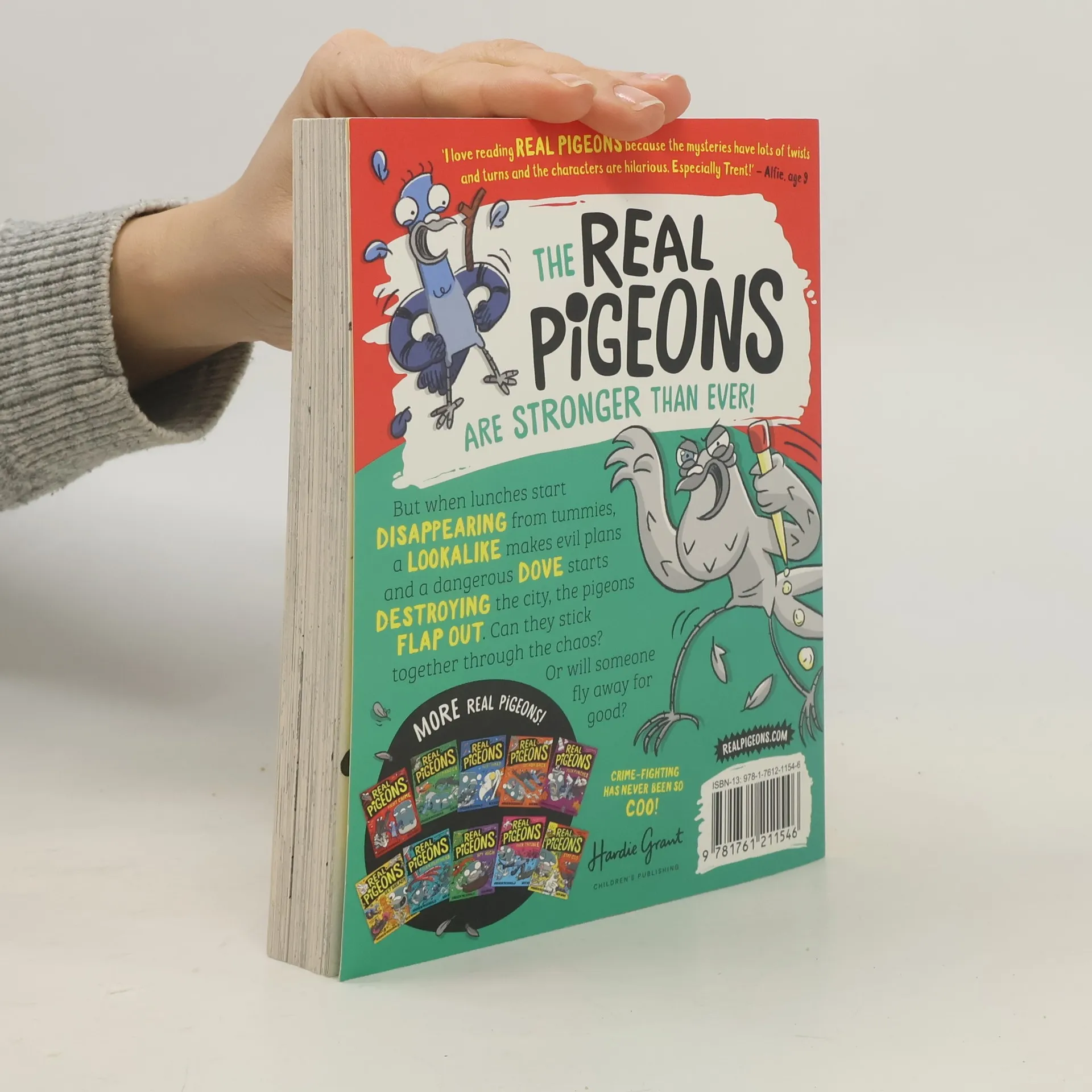 ⭐ Shortlisted for the 2024 CBCA Younger Readers Book of the Year! ⭐ In their eleventh adventure, the feathery crime-fighters are back in a hilarious blockbuster! The REAL PIGEONS thrive on solving mysteries, but when lunches mysteriously vanish, a LOOKALIKE pigeon hatches evil plans, and a dangerous DOVE wreaks havoc in the city, the squad must harness all their powers to save the day. A special TRENT story is included in this installment! This best-selling Australian series has captivated readers globally, with over 600,000 copies in print across 25 languages. Each book features three entertaining and silly mysteries, making it a hit with fans of Bad Guys and Dog Man. The series is also being developed into an animated film and TV show by Nickelodeon, produced by James Corden and Ben Winston! Combining graphic novel elements with traditional narrative, McDonald’s text is charming and engaging, while Wood’s hilarious illustrations add an extra layer of fun. Despite its light-hearted tone, this adventure addresses serious themes like friendship, bravery, and loyalty. Ever wondered why pigeons act so strangely? It's because they're busy chasing bad guys and saving the day! Don't miss the entire REAL PIGEONS series, with the next installment, Real Pigeons Power Up, coming in November 2024!