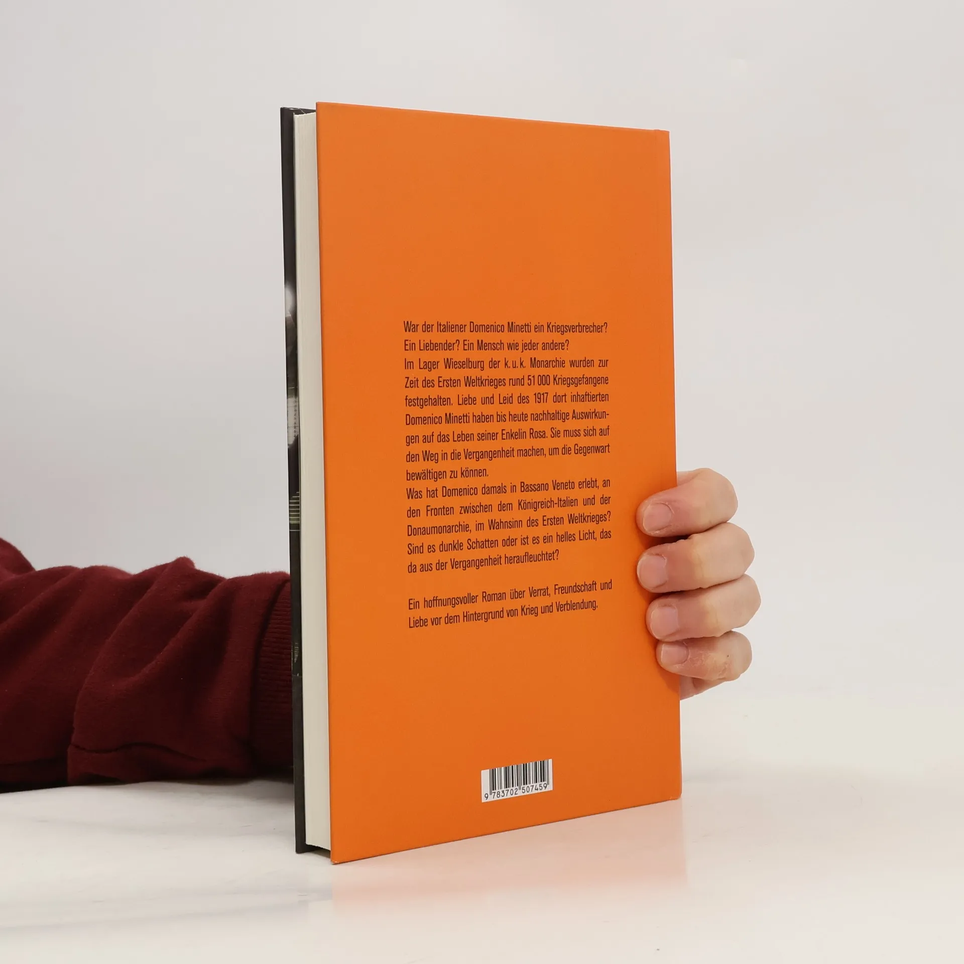 War der Italiener Domenico Minetti ein Kriegsverbrecher? Ein Liebender? Ein Mensch wie jeder andere? Im Lager Wieselburg der k. u. k. Monarchie wurden zur Zeit des Ersten Weltkrieges rund 51 000 Kriegsgefangene festgehalten. Liebe und Leid des 1917 dort inhaftierten Domenico Minetti haben bis heute nachhaltige Auswirkungen auf das Leben seiner Enkelin Rosa. Sie muss sich auf den Weg in die Vergangenheit machen, um die Gegenwart bewältigen zu können. Was hat Domenico damals in Bassano Veneto erlebt, an den Fronten zwischen dem Königreich Italien und der Donaumonarchie, im Wahnsinn des Ersten Weltkrieges? Sind es dunkle Schatten oder ist es ein helles Licht, das da aus der Vergangenheit heraufleuchtet?