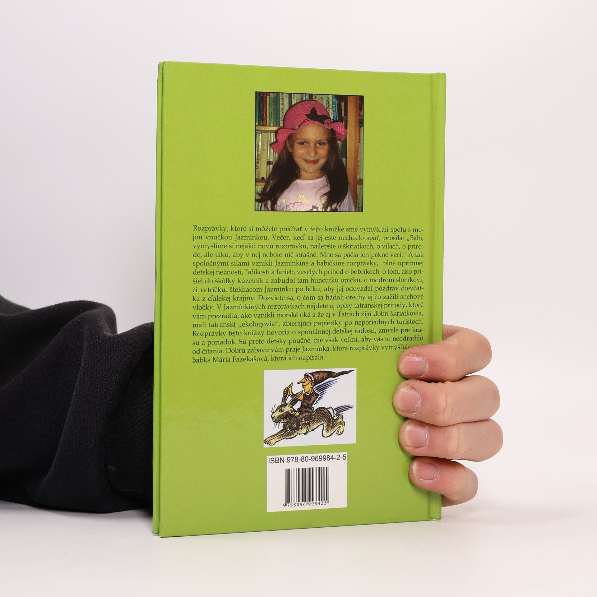 Rozprávky, ktoré si môžete prečítať v tejto knižke sme vymýšľali spolu s mojou vnučkou Jazmínkou. Večer, keď sa jej ešte nechcelo spať, prosila: „Babi, vymyslime si nejakú novú rozprávku, najlepšie o škriatkoch, o vílach, o prírode, ale takú, aby v nej nebolo nič strašné. Mne sa páčia len pekné veci.“ A tak spoločnými silami vznikli Jazmínkine a babičkine rozprávky, plné úprimnej detskej nežnosti, ľahkosti a farieb, veselých príhod o bobríkoch, o tom, ako prišiel do škôlky kúzelník a zabudol tam huncútku opičku, o modrom sloníkovi, či vetríčku, štekliacom Jazmínku po líčku, aby jej odovzdal pozdrav dievčatka z ďalekej krajiny. Dozviete sa, o čom sa hádali orechy aj čo zažili snehové vločky. V Jazmínkiných rozprávkach nájdete aj opisy tatranskej prírody, ktoré vám prezradia, ako vznikli morské oká a že aj v Tatrách žijú dobrí škriatkovia, malí tatranskí „ekológovia“, zbierajúci papieriky po neporiadnych turistoch. Rozprávky tejto knižky hovoria o spontánnej detskej radosti, zmysle pre krásu a poriadok. Sú preto detsky poučné, nie však veľmi, aby vás to neodradilo od čítania. Dobrú zábavu vám praje Jazmínka, ktorá rozprávky vymýšľala a jej babka Mária Fazekašová, ktorá ich napísala.