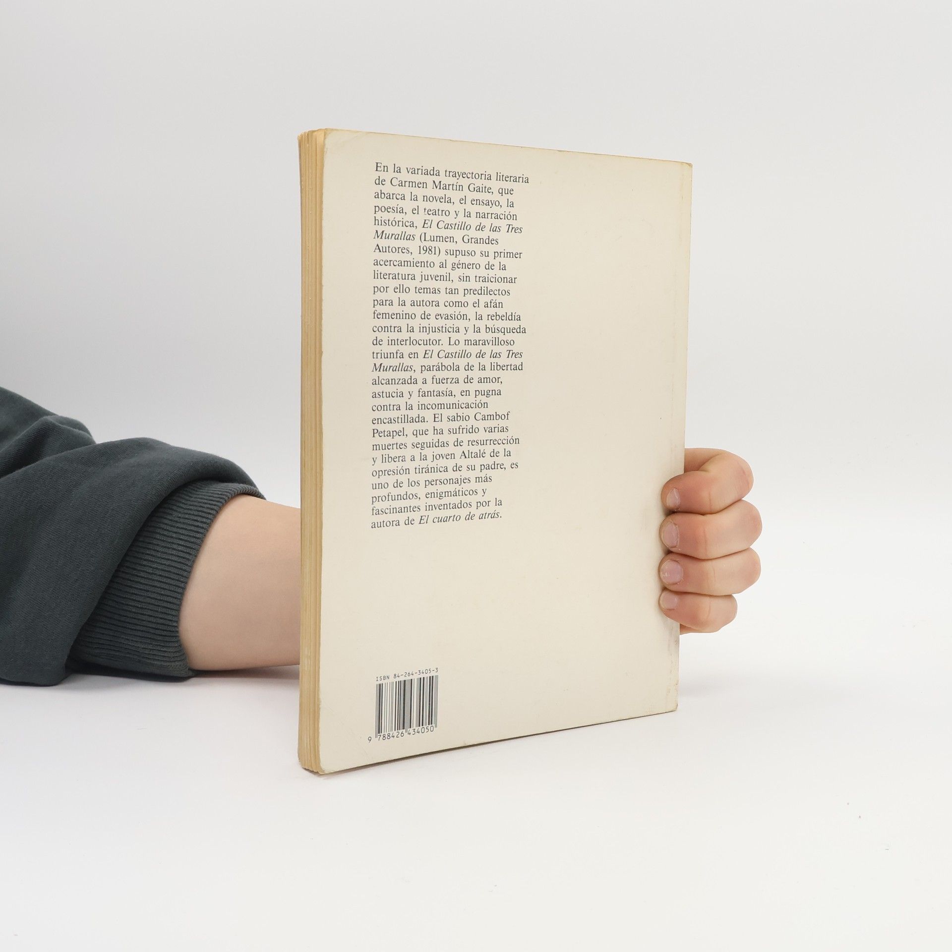 Con este relato fantástico, la autora se adentra en el mundo del cuento maravilloso. Lucandro sólo vive para vigilar y contar sus pertenencias. Aficionado a las cosas de forma exagerada y maniática, es incapaz de disfrutar de ninguna. Serena, su esposa, es víctima de su afán posesivo; sola, privada del afecto de su hija, decide un buen día escapar con el profesor de música y vivir su vida. El ambiente cerrado y opresivo contrasta con el ansia de libertad de Serena. Ilustraciones que recuerdan los arcanos del tarot marcan el destino de los personajes y apoyan el carácter simbólico de la obra. En la variada trayectoria literaria de Carmen Martín Gaite, que abarca la novela, el ensayo, la poesía, el teatro y la narración histórica, El Castillo de las Tres Murallas supuso su primer acercamiento al género de la literatura juvenil, sin dejar por ello temas tan predilectos para la autoria como el afán femenino de la evasión, la rebeldía contra la injusticia y la búsqueda de interlocutor/a. Lo maravilloso triunfa en esta historia, parábola de la libertad alcanzada a fuerza de amor, astucia y fantasía, en pugna contra la incomunicación encastillada. El sabio Cambof Petapel, que ha sufrido varias muertes seguidas de resurrección y libera a la joven Altalé de la opresión tiránica de su padre, es uno de los personajes más profundos, enigmáticos y fascinantes inventados por la autora de El cuarto de atrás .