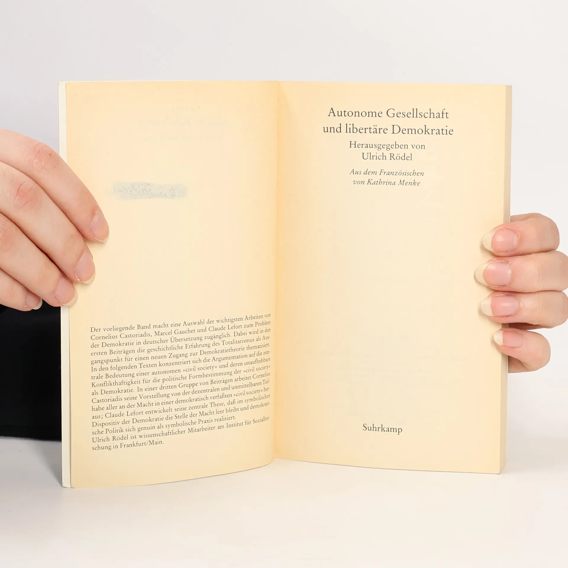 Autonome Gesellschaft und libertäre Demokratie, Claude Lefort, Marcel Gauchet, Cornelius Castoriadis, Ulrich Rödel