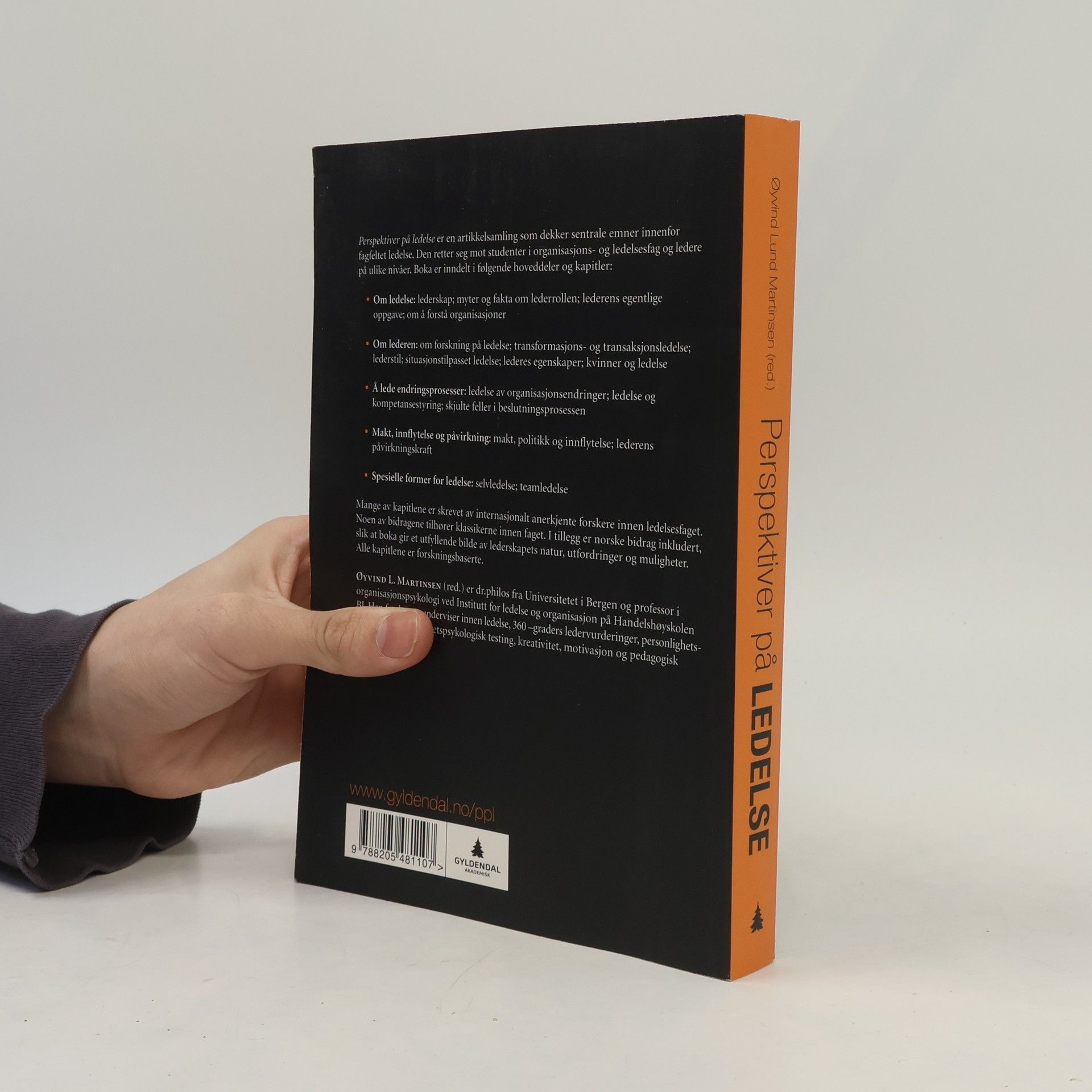 Dette er en artikkelsamling som dekker sentrale emner innen fagfeltet ledelse. Boken retter seg mot ledere på ulike nivåer og studenter i organisasjons- og ledelsesfag. Følgende temaer behandles: Fenomenet lederskap. Makt, politikk og innflytelse. Lederens personlighetstrekk og lederstil. Situasjonstilpasset ledelse. Ledelse av organisasjonsendringer. Styring av menneskelig ressursbruk. Transformasjons- og transaksjonsledelse. Myter og fakta om lederrollen. Ledere som informasjonsbehandlere. Kjønnsforskjellers betydning for ledelse. Selvledelse.