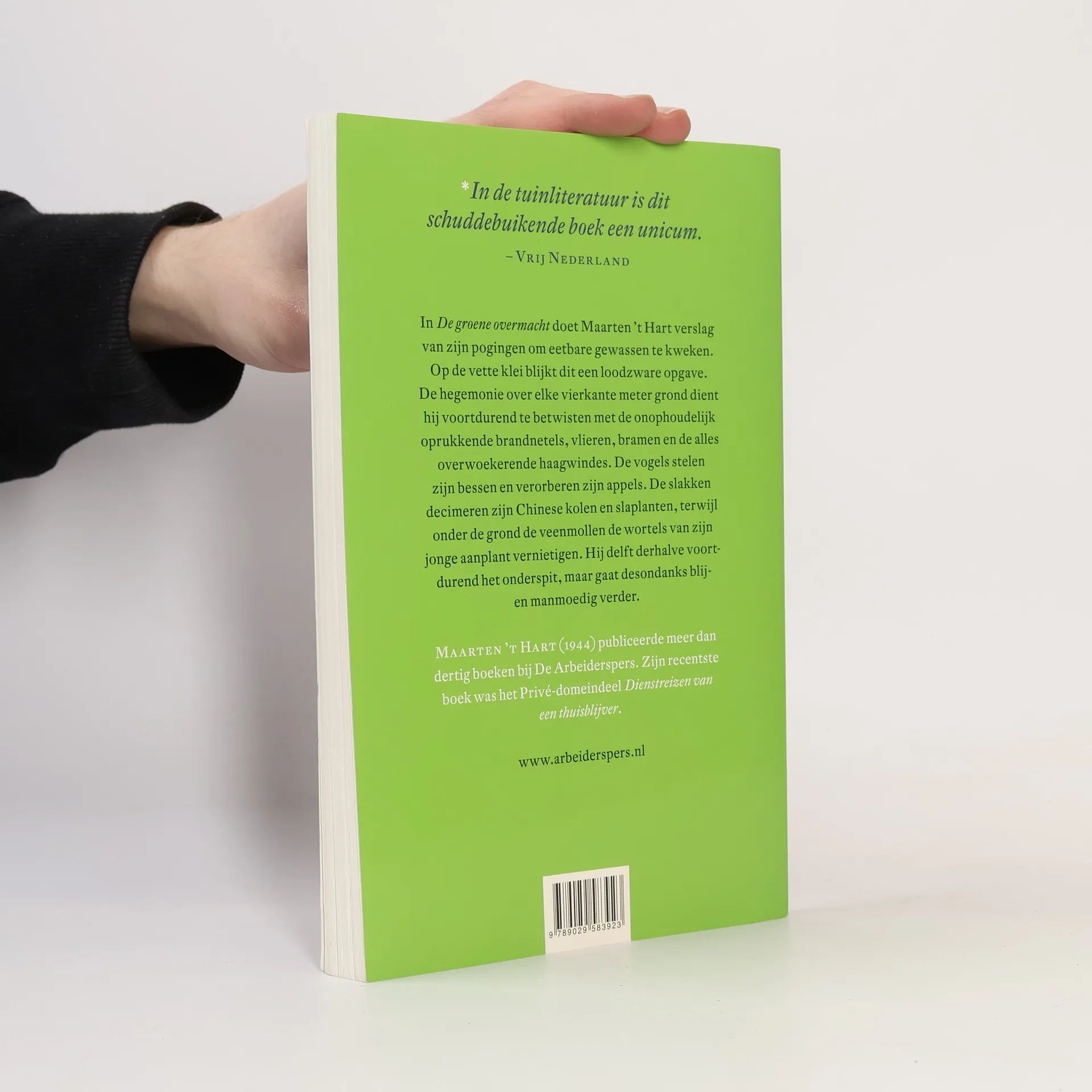 In De groene overmacht doet Maarten ’t Hart verslag van zijn pogingen om eetbare gewassen te kweken. Op de vette klei blijkt dit een loodzware opgave. De hegemonie over elke vierkante meter grond dient hij voortdurend te betwisten met de onophoudelijk oprukkende brandnetels, vlieren, bramen en de alles overwoekerende haagwindes. De vogels stelen zijn bessen en verorberen zijn appels. De slakken decimeren zijn Chinese kolen en slaplanten, terwijl onder de grond de veenmollen de wortels van zijn jonge aanplant vernietigen. Hij delft derhalve voortdurend het onderspit, maar gaat desondanks blij- en manmoedig verder.