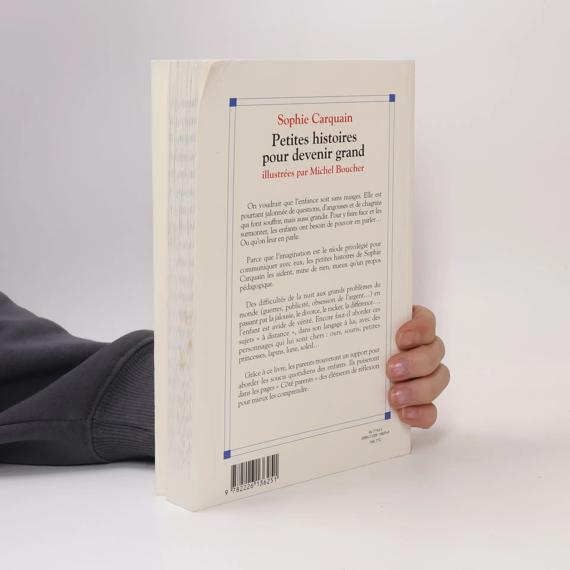 On voudrait que l'enfance soit sans nuages. Elle est pourtant jalonnée de questions, d'angoisses et de chagrins qui font souffrir, mais aussi grandir. Pour y faire face et les surmonter, les enfants ont besoin de pouvoir en parler... Ou qu'on leur en parle.Parce que l'imagination est le mode privilégié pour communiquer avec eux, les petites histoires de Sophie Carquain les aident, mine de rien, mieux qu'un propos pédagogique.Des difficultés de la nuit aux grands problèmes du monde (guerres, publicité, obsession de l'argent...) en passant par la jalousie, le divorce, le racket, la différence..., l'enfant est avide de vérité. Encore faut-il aborder ces sujets « à distance », dans son langage à lui, avec des personnages qui lui sont chers : ours, souris, petites princesses, lapins, lune, soleil...Grâce à ce livre, les parents trouveront un support pour aborder les soucis quotidiens des enfants. Ils puiseront dans les pages « Côté parents » des éléments de réflexion pour mieux les comprendre.