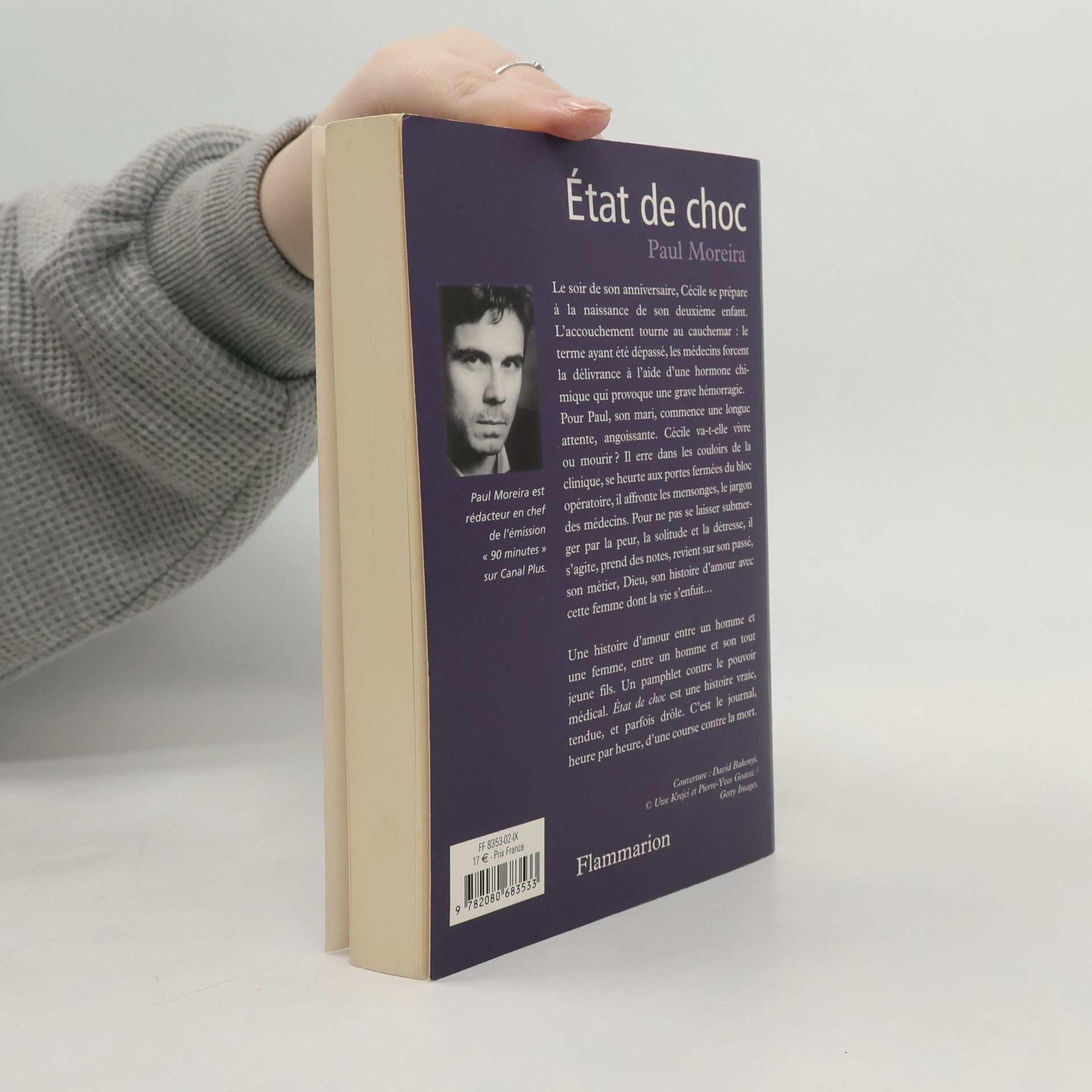 Le soir de son anniversaire, Cécile se prépare à la naissance de son deuxième enfant. L'accouchement tourne au cauchemar : le terme ayant été dépassé, les médecins forcent la délivrance à l'aide d'une hormone chimique qui provoque une grave hémorragie. Pour Paul, son mari, commence une longue attente, angoissante. Cécile va-t-elle vivre ou mourir ? Il erre dans les couloirs de la clinique, se heurte aux portes fermées du bloc opératoire, il affronte les mensonges, le jargon des médecins. Pour ne pas se laisser submerger par la peur, la solitude et la détresse, il s'agite, prend des notes, revient sur son passé, son métier, Dieu, son histoire d'amour avec cette femme dont la vie s'enfuit... Une histoire d'amour entre un homme et une femme, entre un homme et son tout jeune fils. Un pamphlet contre le pouvoir médical. Etat de choc est une histoire vraie, tendue, et parfois drôle. C'est le journal, heure par heure, d'une course contre la mort.