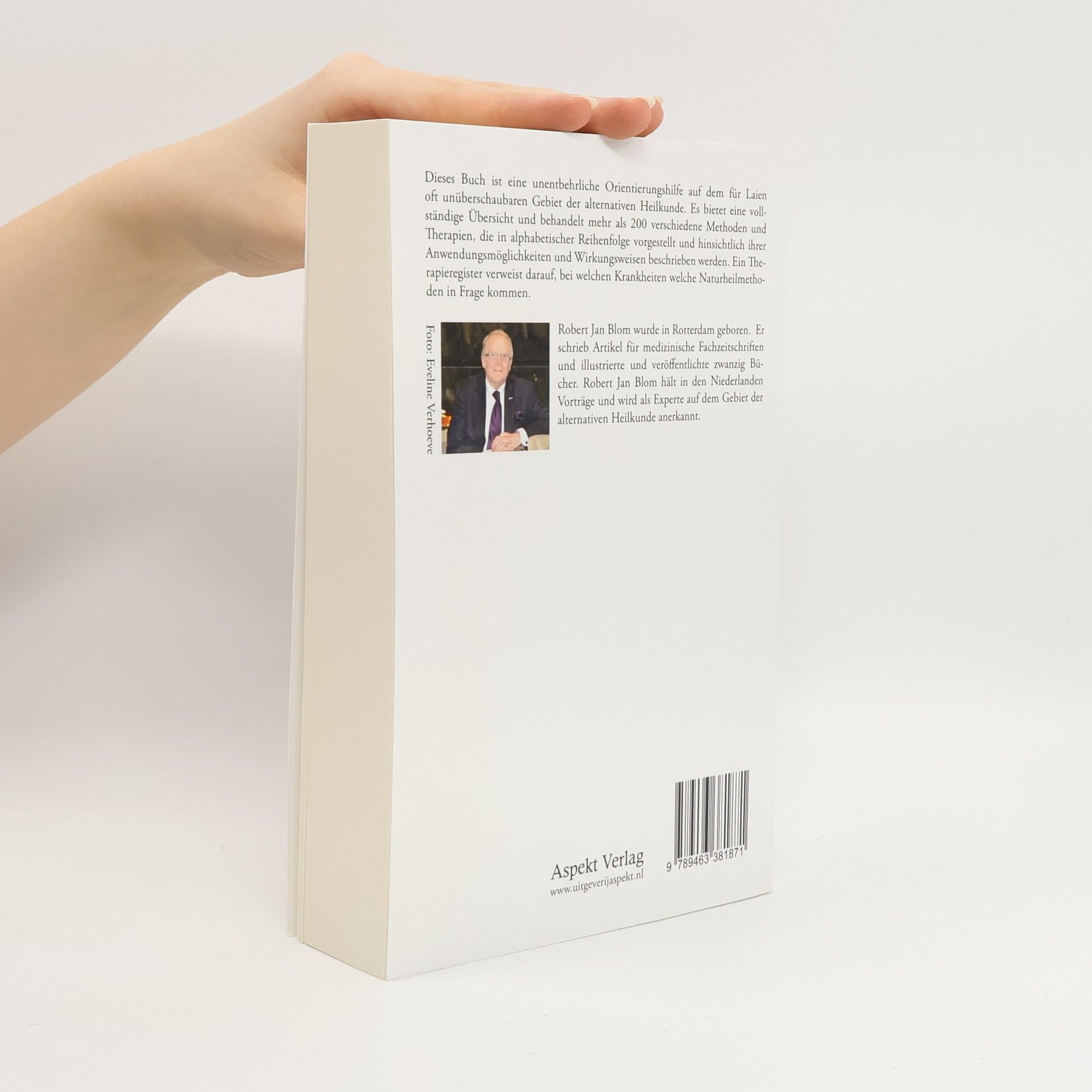 Dieses Buch ist eine unentbehrliche Orientierungshilfe auf dem fur Laien oft unuberschaubaren Gebiet der alternativen Heilkunde. Es bietet eine vollstandige Ubersicht und behandelt mehr als 200 verschiedene Methoden und Therapien, die in alphabetischer Reihenfolge vorgestellt und hinsichtlich ihrer Anwendungsmoglichkeiten und Wirkungsweisen beschrieben werden. Ein Therapieregister verweist darauf, bei welchen Krankheiten welche Naturheilmethoden in Frage kommen. Robert Jan Blom wurde in Rotterdam geboren. Er schrieb Artikel fur medizinische Fachzeitschriften und illustrierte und veroffentlichte zwanzig Bucher. Robert Jan Blom halt in den Niederlanden Vortrage und wird als Experte auf dem Gebiet der alternativen Heilkunde anerkannt.