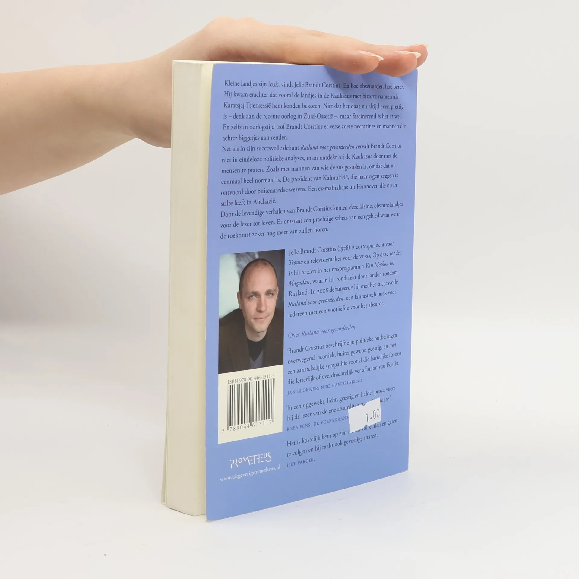 “Kleine Landjes zijn leuk. vindt Jelle Brandt Corstius. En hoe obscuurder, hoe beter. Hij kwam erachter dat vooral de landjes in de Kaukasus met bizarre namen als Karatsjaj-Tsjerkessië hem konden bekoren. Niet dat het daar nu altijd even prettig is – denk aan de recente oorlog in Zuid-Ossetië – maar fascinerend is het er wel. En zelfs in oorlogstijd trof Brandt Corstius er verse zoete nectarines en mannen die achter biggetjes aan renden. Net als in zijn succesvolle debuut ‘Rusland voor gevorderden’ (inmiddels 3e druk) vervalt Brandt Corstius in ‘Kleine Landjes’ niet in eindeloze politieke analyses, maar ontdekt hij de Kaukasus door met de mensen te praten. Zoals met mannen van wie de zus gestolen is, omdat dat nu eenmaal heel normaal is. De president van Kalmukkië, die naar eigen zeggen is ontvoerd door buitenaardse wezens. Een ex-maffiabaas uit Hannover, die nu in stilte leeft in Abchazië. En al knoflookthee drinkend met een geschiedenisstudent in Tsjetsjenië. Door de levendige verhalen van Brandt Corstius komen dezekleine, obscure landjes voor de lezer tot leven. Er ontstaat eenprachtige schets van een gebied waar we in de toekomst zeker nogmeer van zullen horen”.
