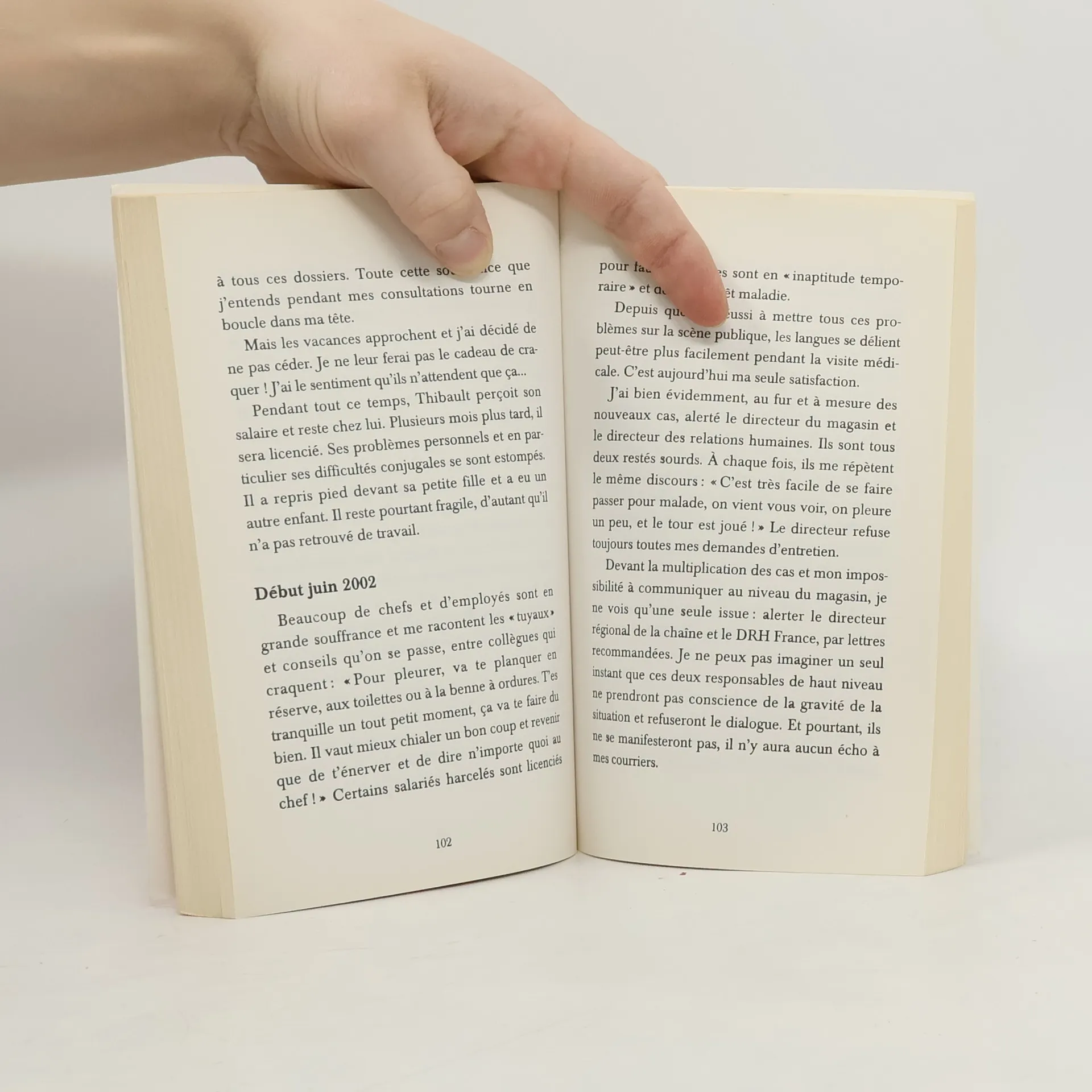 Le journal tenu par le docteur Dorothée Ramaut, de juin 2000 à mars 2006, est un témoignage unique. Il relate, au jour le jour, de l'intérieur, la vie d'une grande surface et décrit les souffrances subies par ses salariés au nom d'un mode de gestion impitoyable, qui les détruit l'un après l'autre sous prétexte d'ascension sociale puis les rejette, lorsque, épuisés ou révoltés, ils ne peuvent plus le supporter. Jadis, les entreprises licenciaient, aujourd'hui, elles torturent moralement les indésirables pour les pousser à la démission – en réalité, à la maladie. Le docteur Ramaut, scandalisée par ces méthodes qu'elle juge " contraires aux droits de l'homme ", et dont elle a failli, elle-même, être victime après avoir tenté de les combattre, est le premier médecin du travail à rompre la loi du silence.Ce récit met à nu un problème de société qui nous concerne tous. L'impact économique de la santé, de la sécurité et des maltraitances au travail coûterait à la France entre 45 et 70 milliards d'euros par an.