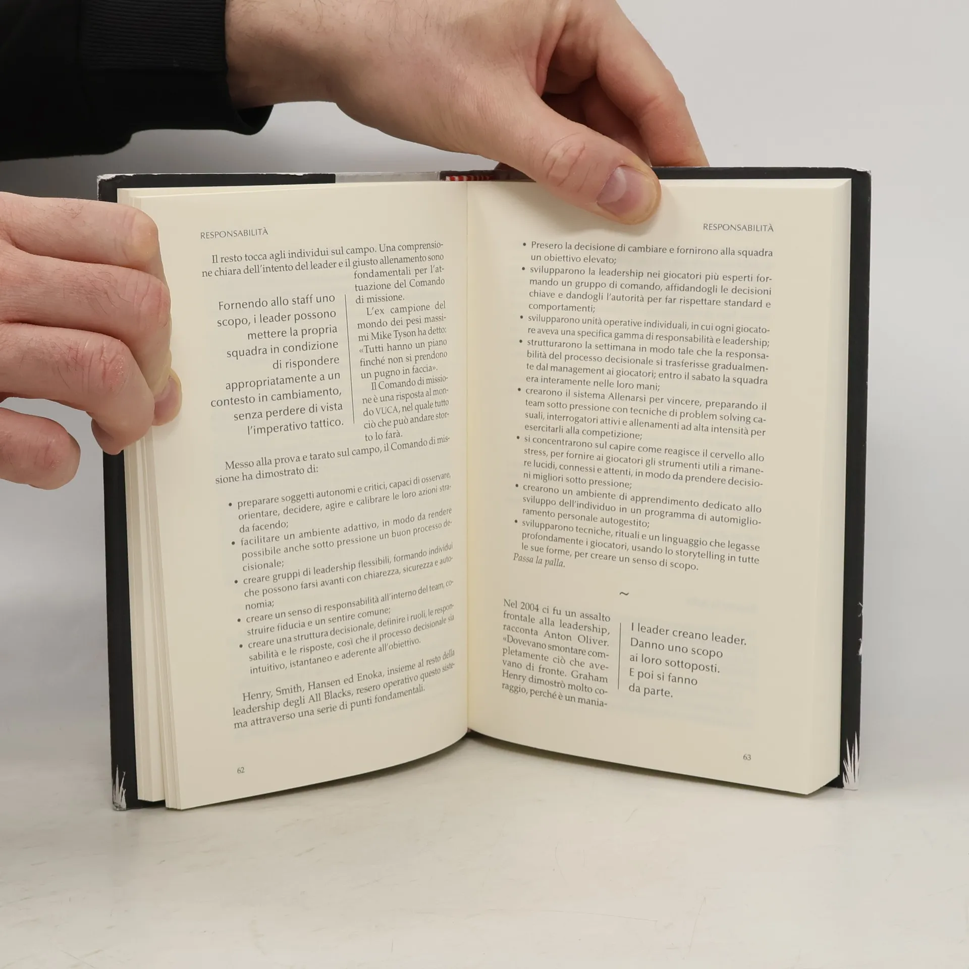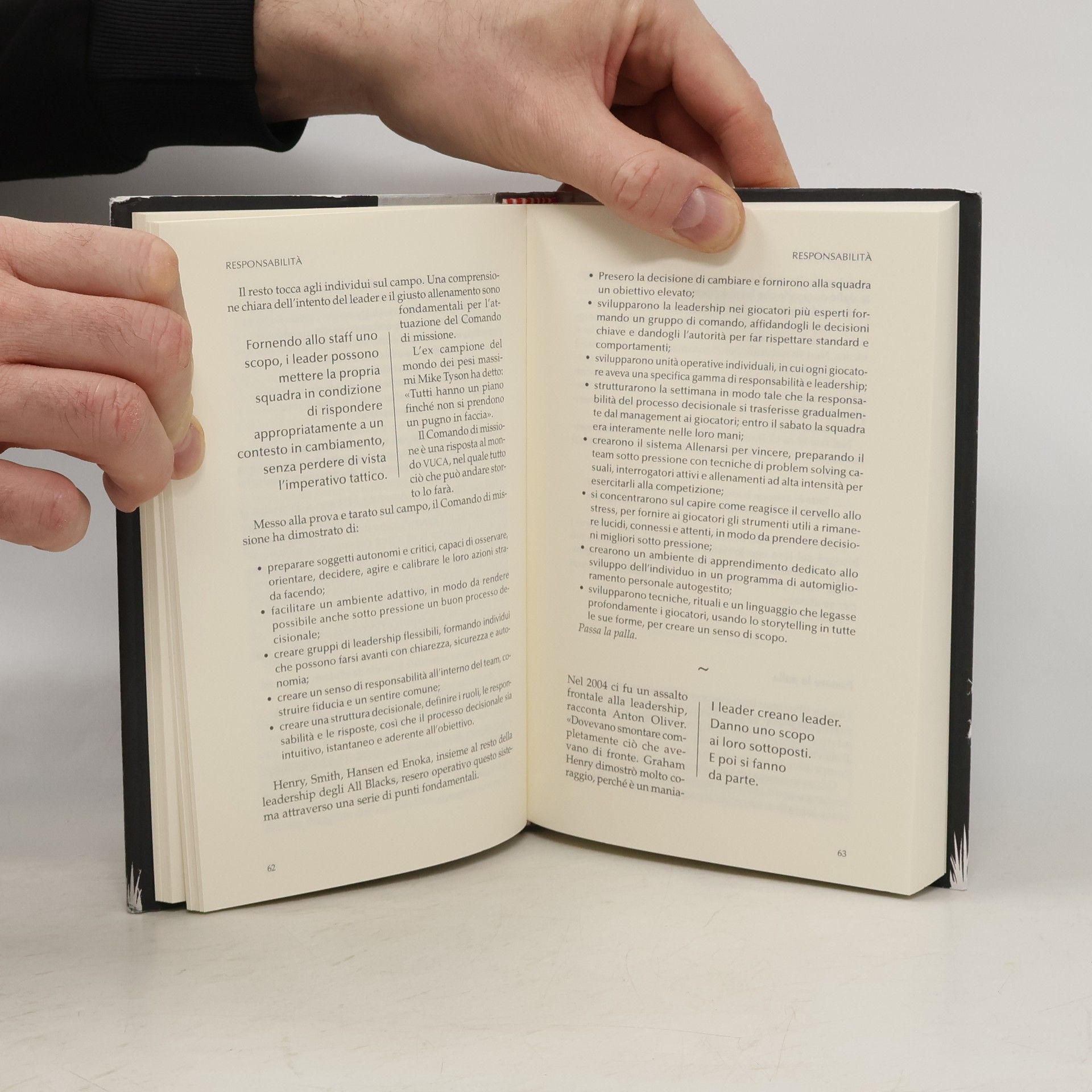 Gli All Blacks neozelandesi sono la squadra più forte al mondo, negli ultimi 100 anni hanno vinto più del 75% dei loro match internazionali. Qual è il segreto del loro successo? E cosa possiamo noi - come individui, squadre o aziende - imparare da loro? Secondo James Kerr tutti i team vincenti condividono gli stessi principi, tra cui: un'attenzione maniacale all'eccellenza; un impegno collettivo verso una "causa comune"; un alto grado di autonomia, fiducia e iniziativa individuale; una comunicazione chiara e convincente; un'enfasi sulla responsabilità individuale; integrità e umiltà; il tutto sostenuto dalla convinzione che bisogna lavorare sodo l'uno per l'altro, in armonia, senza dissidi, reprimendo l'ego individuale a favore di una causa più grande. In altre parole, come dice il famoso mantra degli All Blacks, "niente teste di cazzo".