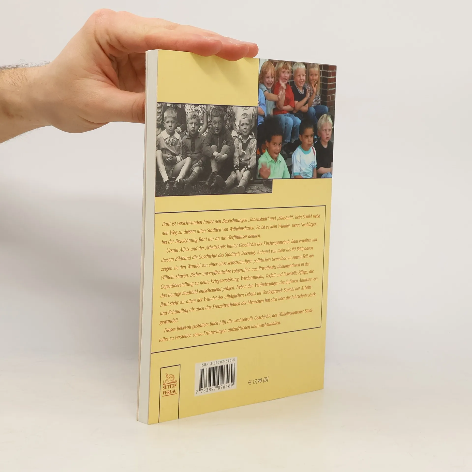 Bant ist verschwunden hinter den Bezeichnungen „Innenstadt“ und „Südstadt“. Kein Schild weist den Weg zu diesem alten Stadtteil von Wilhelmshaven. So ist es kein Wunder, wenn Neubürger bei der Bezeichnung Bant nur an die Werfthäuser denken. Ursula Aljets und der Arbeitskreis Banter Geschichte der Kirchengemeinde Bant erhalten mit diesem Bildband die Geschichte des Stadtteils lebendig. Anhand von mehr als 80 Bildpaaren zeigen sie den Wandel von einer einst selbstständigen politischen Gemeinde zu einem Teil von Wilhelmshaven. Bisher unveröffentlichte Fotografien aus Privatbesitz dokumentieren in der Gegenüberstellung zu heute Kriegszerstörung, Wiederaufbau, Verfall und liebevolle Pflege, die das heutige Stadtbild entscheidend prägen. Neben den Veränderungen des äußeren Antlitzes von Bant steht vor allem der Wandel des alltäglichen Lebens im Vordergrund: Sowohl der Arbeits- und Schulalltag als auch das Freizeitverhalten der Menschen hat sich über die Jahrzehnte stark gewandelt. Dieses liebevoll gestaltete Buch hilft die wechselvolle Geschichte des Wilhelmshavener Stadtteiles zu verstehen sowie Erinnerungen aufzufrischen und wachzuhalten.