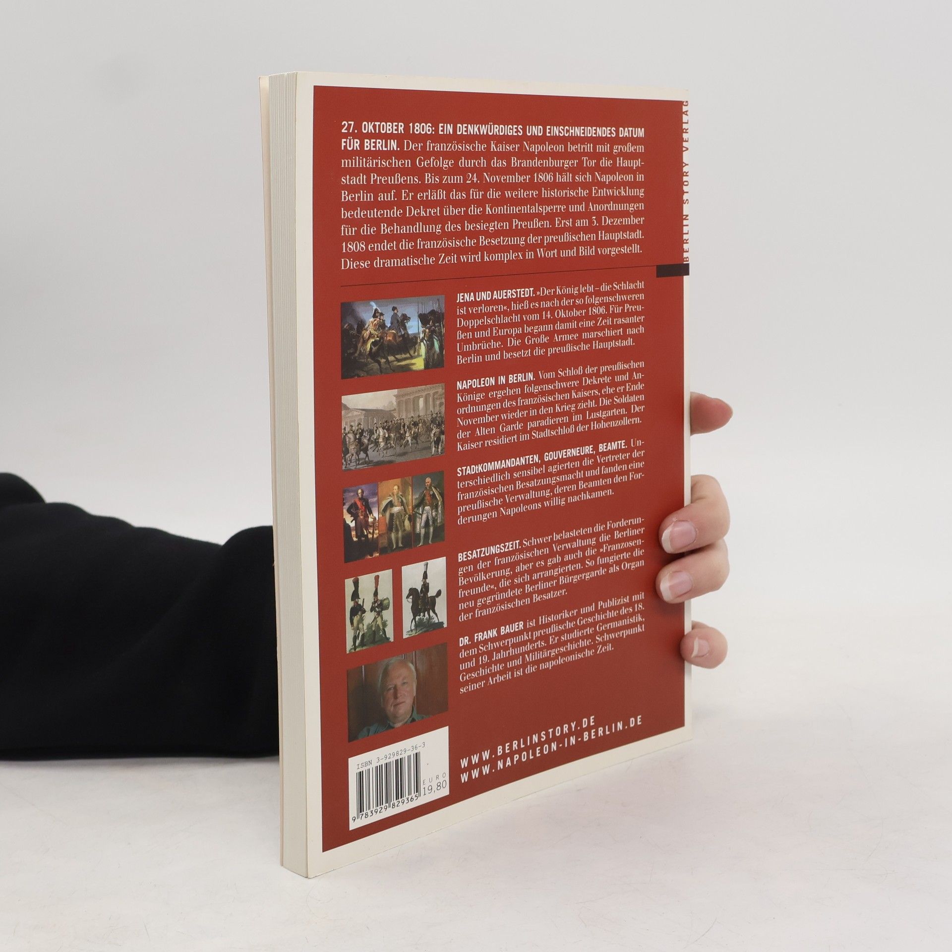 27. OKTOBER 1806: EIN DENKWÜRDIGES UND EINSCHNEIDENDES DATUM FÜR BERLIN. Der französische Kaiser Napoleon betritt mit großem militärischen Gefolge durch das Brandenburger Tor die Hauptstadt Preußens. Bis zum 24. November 1806 hält sich Napoleon in Berlin auf. Er erläßt das für die weitere historische Entwicklung bedeutende Dekret über die Kontinentalsperre und Anordnungen für die Behandlung des besiegten Preußen. Erst am 3. Dezember 1808 endet die französische Besetzung der preußischen Hauptstadt. Diese dramatische Zeit wird komplex in Wort und Bild vorgestellt.