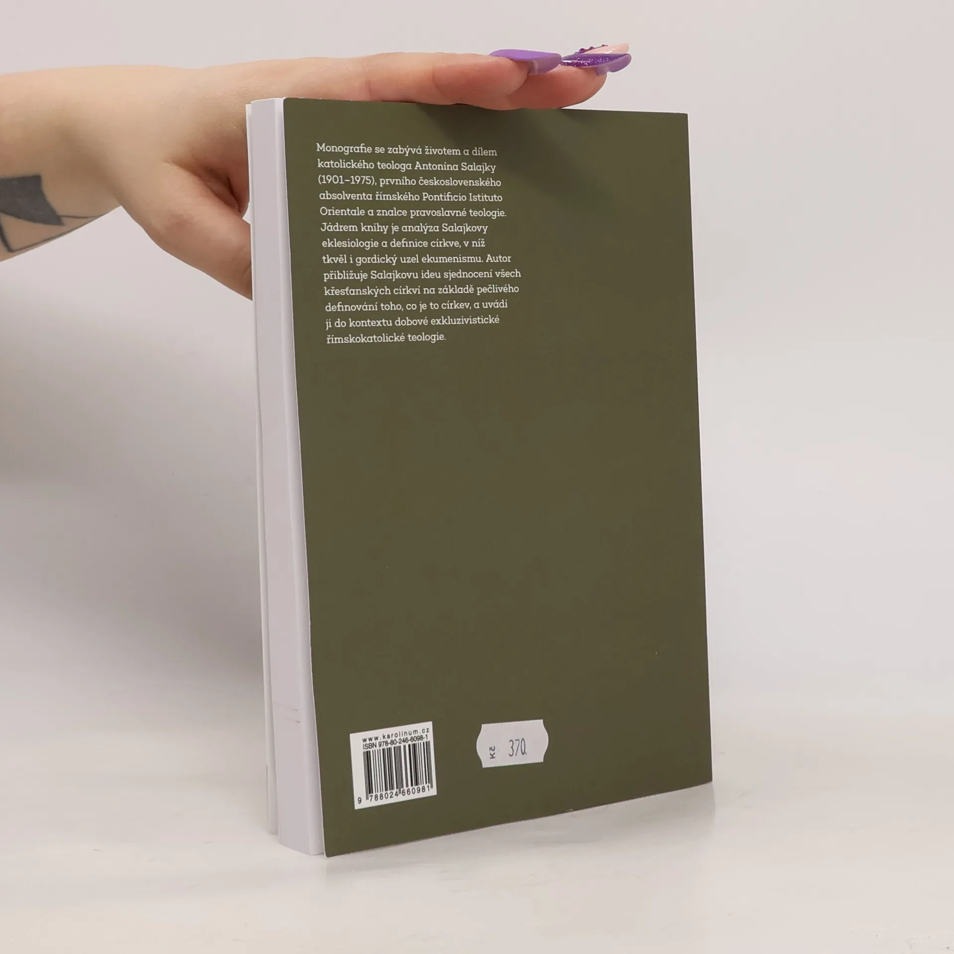 Monografie se zabývá životem a dílem katolického teologa Antonína Salajky (1901–1975), prvního československého absolventa římského Pontificio Istituto Orientale a znalce pravoslavné teologie. Jádrem knihy je analýza Salajkovy eklesiologie a definice církve, v níž tkvěl i gordický uzel ekumenismu. Autor přibližuje Salajkovu ideu sjednocení všech křesťanských církví na základě pečlivého definování toho, co je to církev, a uvádí ji do kontextu dobové exkluzivistické římskokatolické teologie.