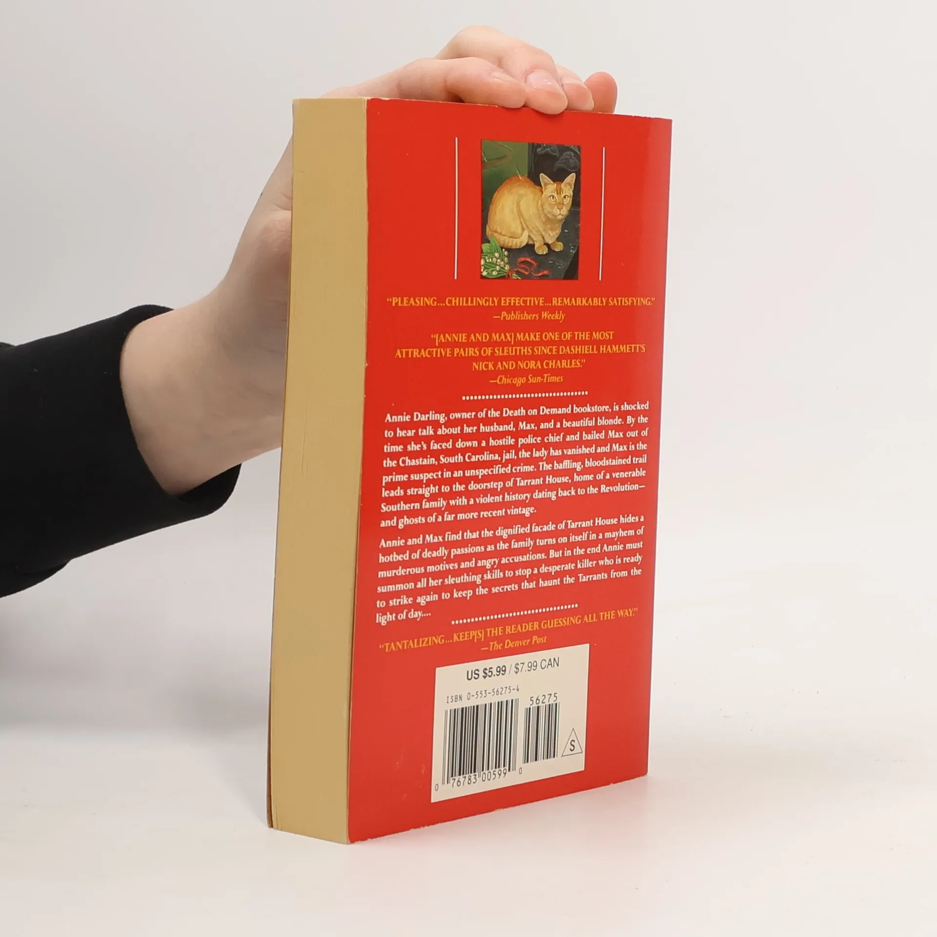 Annie Darling, owner of the Death on Demand bookstore, is shocked to hear talk about her husband, Max, and a beautiful blonde. By the time she’s faced down a hostile police chief and bailed Max out of the Chastain, South Carolina, jail, the lady has vanished and Max is the prime suspect in an unspecified crime. The baffling, bloodstained trail leads straight to the doorstep of Tarrant House, home of the venerable Southern family with a violent history dating back to the Revolution—and ghosts of a far more recent vintage. Annie and Max find that the dignified façade of Tarrant House hides a hotbed of deadly passions as the family turns on itself in a mayhem of murderous motives and angry accusations. But in the end Annie must summon all her sleuthing skills to stop a desperate killer who is ready to strike again to keep the secrets that haunt the Tarrants from the light of day. . . .Praise for Southern Ghost “Tantalizing . . . keep[s] the reader guessing all the way.” —The Denver Post“Pleasing . . . chillingly effective…remarkably satisfying.” —Publishers Weekly“[Annie and Max] make one of the most attractive pairs of sleuths since Dashiell Hammett’s Nick and Nora Charles.” —Chicago Sun-Times