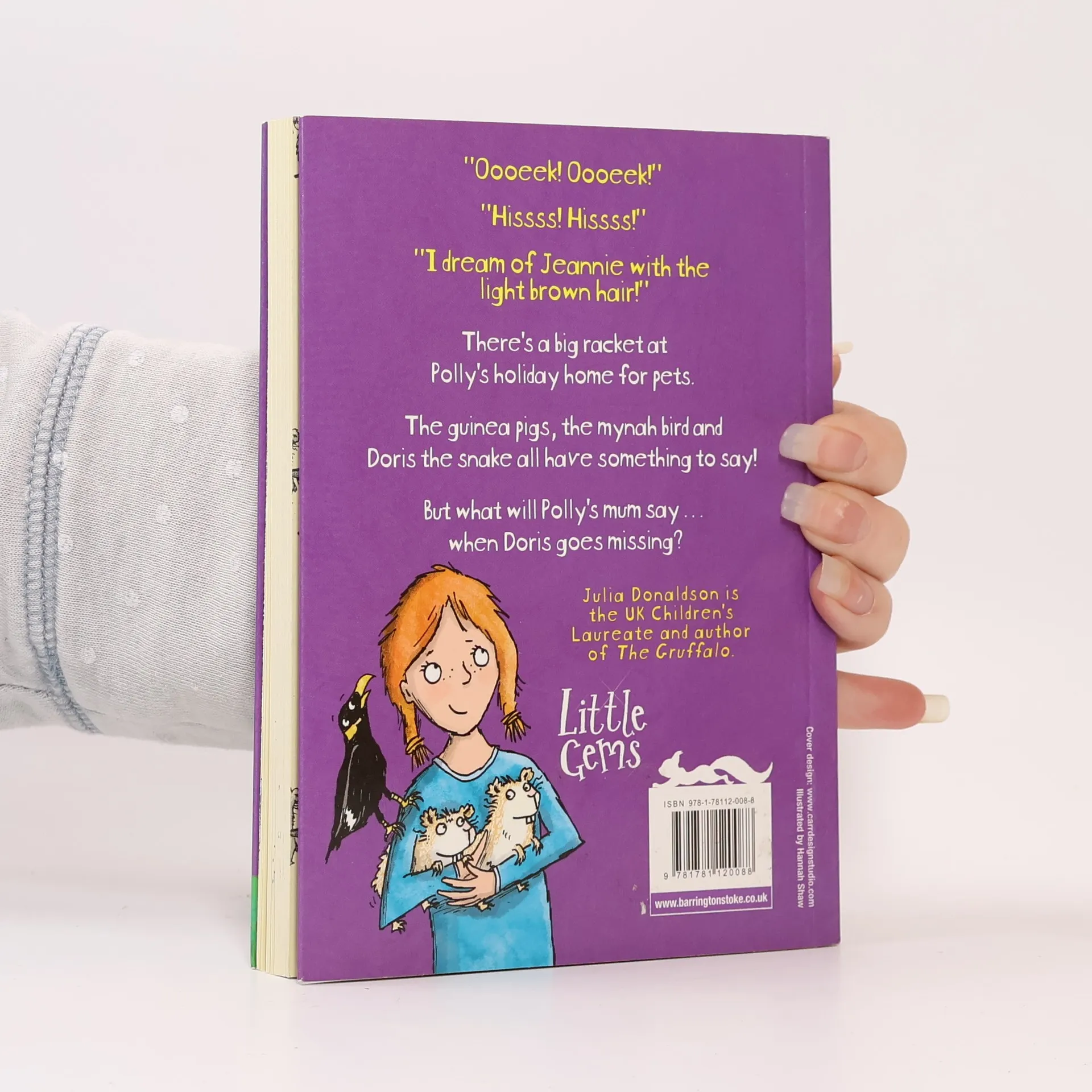 Polly has set up a pets' holiday home for the summer and with a house full of greedy guinea pigs, pesky parrots and slithering snakes, mum is getting more fed up by the day! Especially when Doris the snake goes missing. Can Polly find Doris before the snake finds the guinea pigs?
