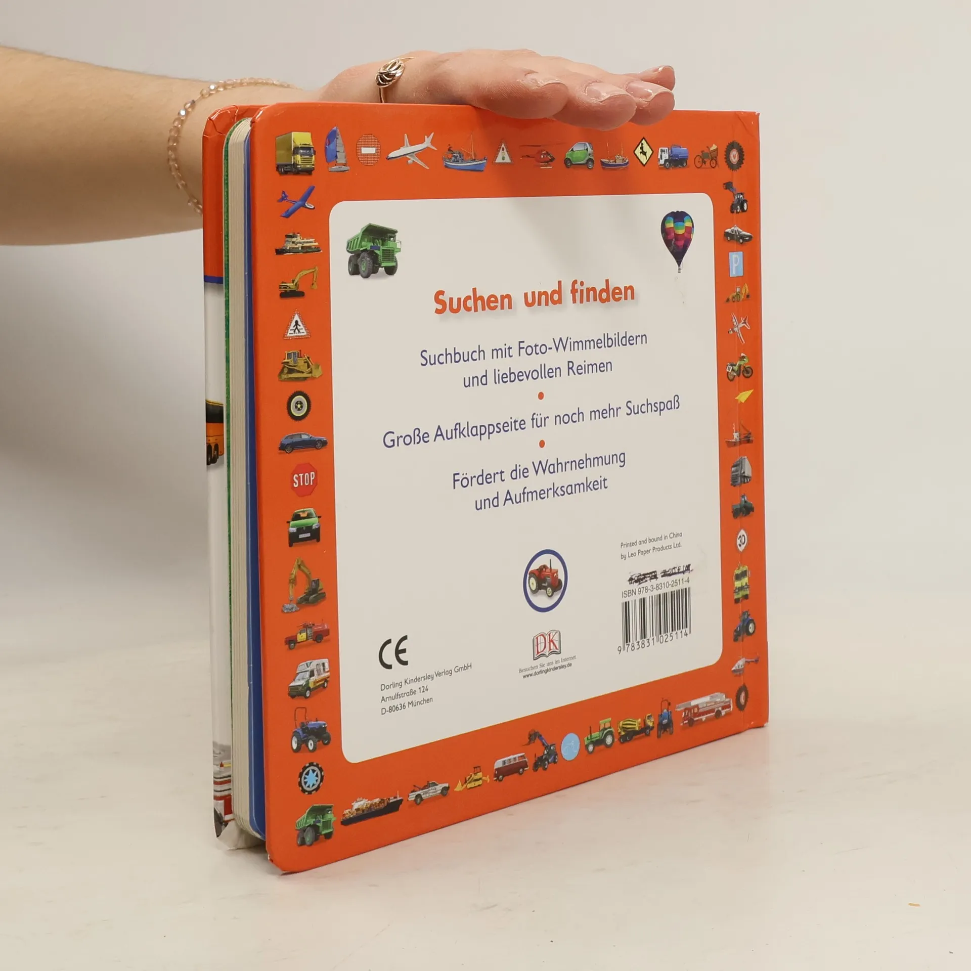 Suchen und finden! In diesem Buch ist jede Menge los: Fünf bunte Seiten zeigen lustige Wimmelbilder mit spannenden Fahrzeugen. Vom Betonmischer über ein Flugzeug bis zum Feuerwehrauto gibt es hier viel zu entdecken! Auf jeder Seite laden liebevolle Reime zum Suchen ein. Daneben gibt es ein paar weitere Dinge - einzeln und mit der jeweiligen Wortbezeichnung abgebildet, die auch noch gefunden werden wollen. Ein roter Traktor führt durch das Buch und versteckt sich auf jedem Wimmelbild. Zum Schluss überrascht eine große Aufklappseite, die noch einmal alle Lieblingsgestände zeigt - für extra großen Wimmel-Suchspaß! Ab 18 Monaten