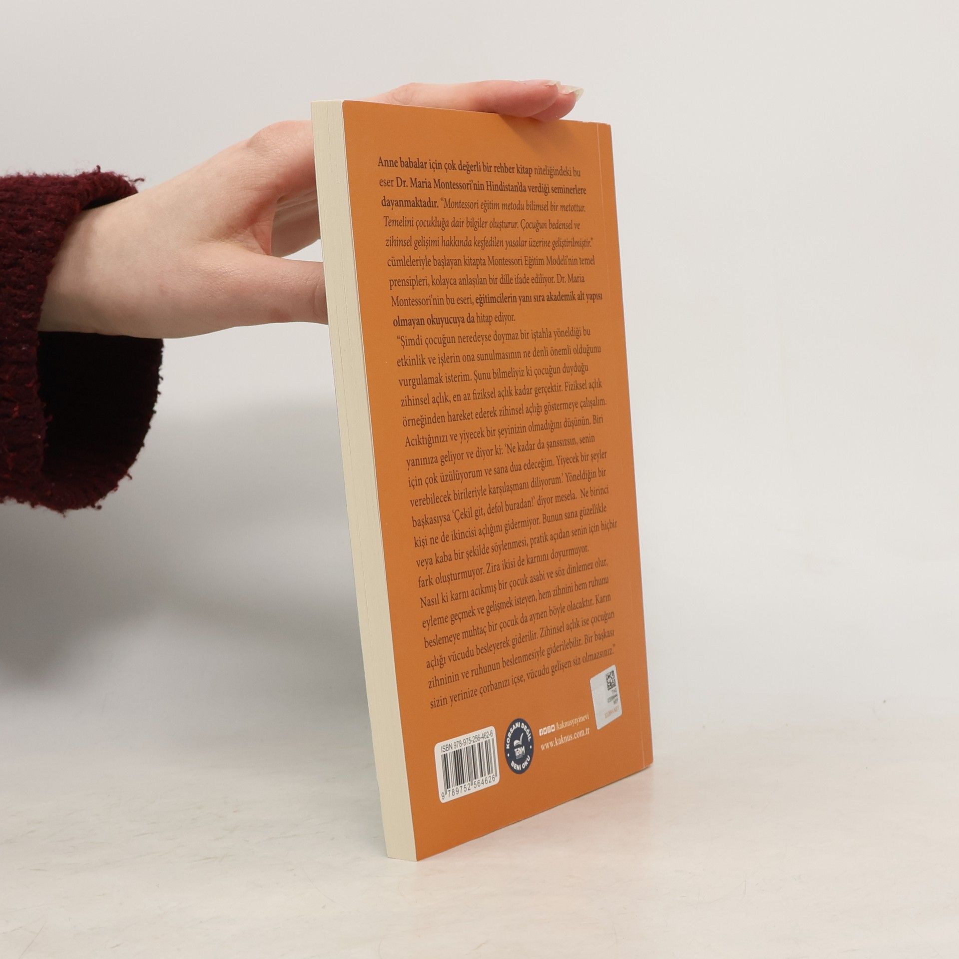 Anne babalar için değerli bir rehber niteliğindeki bu eser, Dr. Maria Montessori'nin Hindistan'da verdiği seminerlere dayanmaktadır. Montessori eğitim metodu, bilimsel bir yaklaşım olarak çocukluğa dair bilgiler üzerine kurulmuştur. Kitap, Montessori Eğitim Modeli'nin temel prensiplerini anlaşılır bir dille ifade ediyor. Dr. Maria Montessori, eğitimcilerin yanı sıra akademik altyapısı olmayan okuyuculara da hitap ediyor. Çocuğun zihinsel açlığının, fiziksel açlık kadar gerçek olduğunu vurguluyor. Zihinsel açlık, çocuğun gelişimi için kritik bir öneme sahiptir. Örneğin, açlık çeken bir birey, sadece başkalarının acıma duygusuyla değil, gerçek bir beslenme ile doyurulmalıdır. Çocuğun hem zihninin hem ruhunun beslenmesi gerektiğini belirtiyor. Zihinsel açlık, çocukların gelişiminde önemli bir rol oynar; bu açlık giderilmeden, çocukların öğrenme ve gelişme istekleri olumsuz etkilenir. Dr. Montessori, bu eseriyle ebeveynlere ve eğitimcilere, çocukların ihtiyaçlarını anlama ve onlara uygun bir eğitim ortamı sağlama konusunda yol gösteriyor. Sayfa 144, Baskı 2016, Kaknus Yayınları.