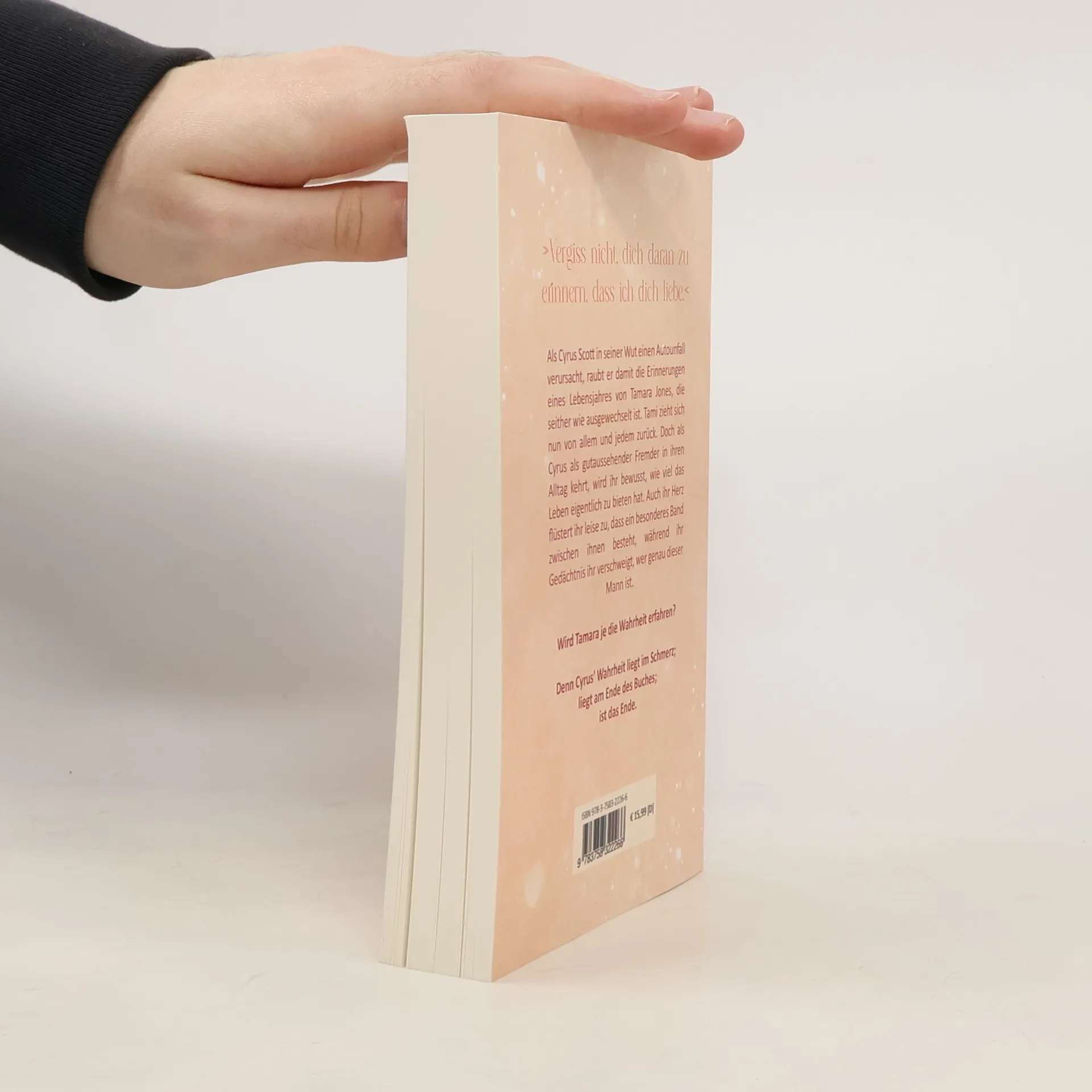 »Vergiss nicht, dich daran zu erinnern, dass ich dich liebe.«Als Cyrus Scott in seiner Wut einen Autounfall verursacht, raubt er damit die Erinnerungen eines Lebensjahres von Tamara Jones, die seither wie ausgewechselt ist. Tami zieht sich nun von allem und jedem zurück. Doch als Cyrus als gutaussehender Fremder in ihren Alltag kehrt, wird ihr bewusst, wie viel das Leben eigentlich zu bieten hat. Auch ihr Herz flüstert ihr leise zu, dass ein besonderes Band zwischen ihnen besteht, während ihr Gedächtnis ihr verschweigt, wer genau dieser Mann ist.Wird Tamara je die Wahrheit erfahren?Denn Cyrus' Wahrheit liegt im Schmerz;liegt am Ende des Buches;ist das Ende.