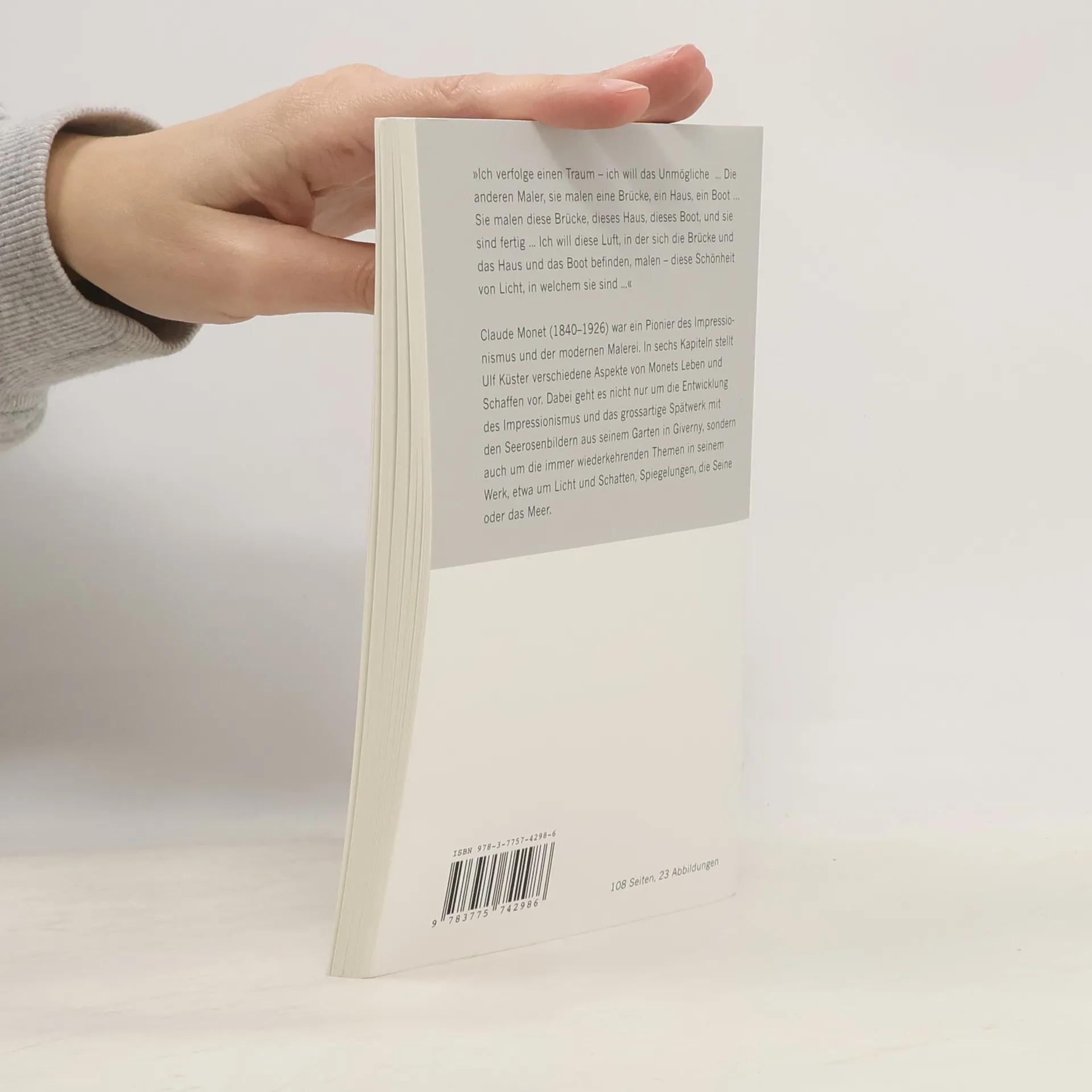 In sechs Kapiteln stellt Ulf Küster Aspekte von Leben und Werk des Malers Claude Monet vor. Dabei geht es nicht nur um die Entwicklung des Impressionismus und das großartige Spätwerk mit den Seerosenbildern aus seinem Garten in Giverny, sondern auch um die immer wiederkehrenden Themen in seinem Werk: Licht und Schatten, Spiegelungen, die Seine und das Meer. Ausstellung: Fondation Beyeler, Riehen/Basel 22.1.–28.5.2017