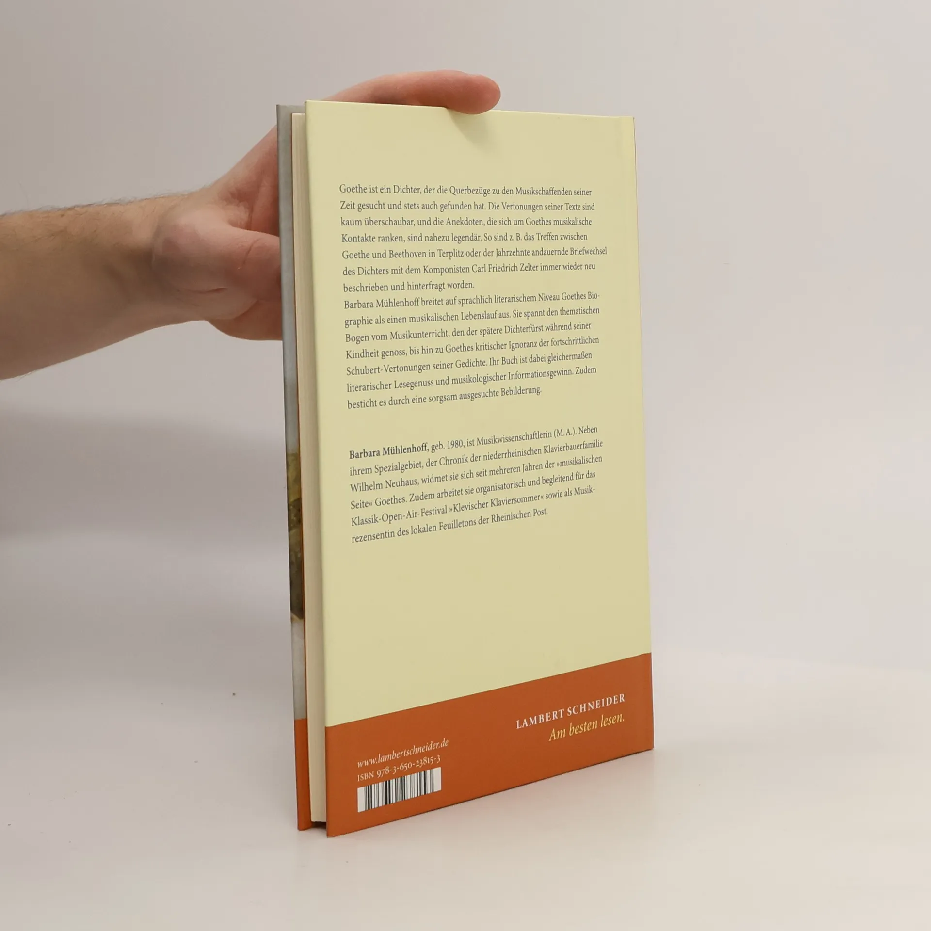 Goethe ist ein Dichter, der die Querbezüge zu den Musikschaffenden seiner Zeit gesucht und gefunden hat. Die Vertonungen seiner Texte bis in die jüngste Zeit sind kaum überschaubar, und die Anekdoten, die sich um Goethes musikalische Kontakte ranken, sind nahezu legendär. So sind z. B. das Treffen zwischen Goethe und Beethoven in Terplitz oder der Jahrzehnte andauernde Briefwechsel des Dichters mit dem Komponisten Carl Friedrich Zelter immer wieder neu hinterfragt worden. Barbara Mühlenhoff beschreibt für jedermann verständlich Goethes Biographie als einen musikalischen Lebenslauf. Sie beginnt mit dem Musikunterricht, den der spätere Dichterfürst während seiner Kindheit genoss, und arbeitet sich chronologisch weiter vor bis hin zu Goethes kritischer Ignoranz der Schubert-Vertonungen seiner Gedichte. Ihr Buch ist dabei gleichermaßen Lesegenuss und Informationsgewinn. Zudem besticht es durch eine ausgesuchte Bebilderung mit zeitgenössischen Darstellungen.