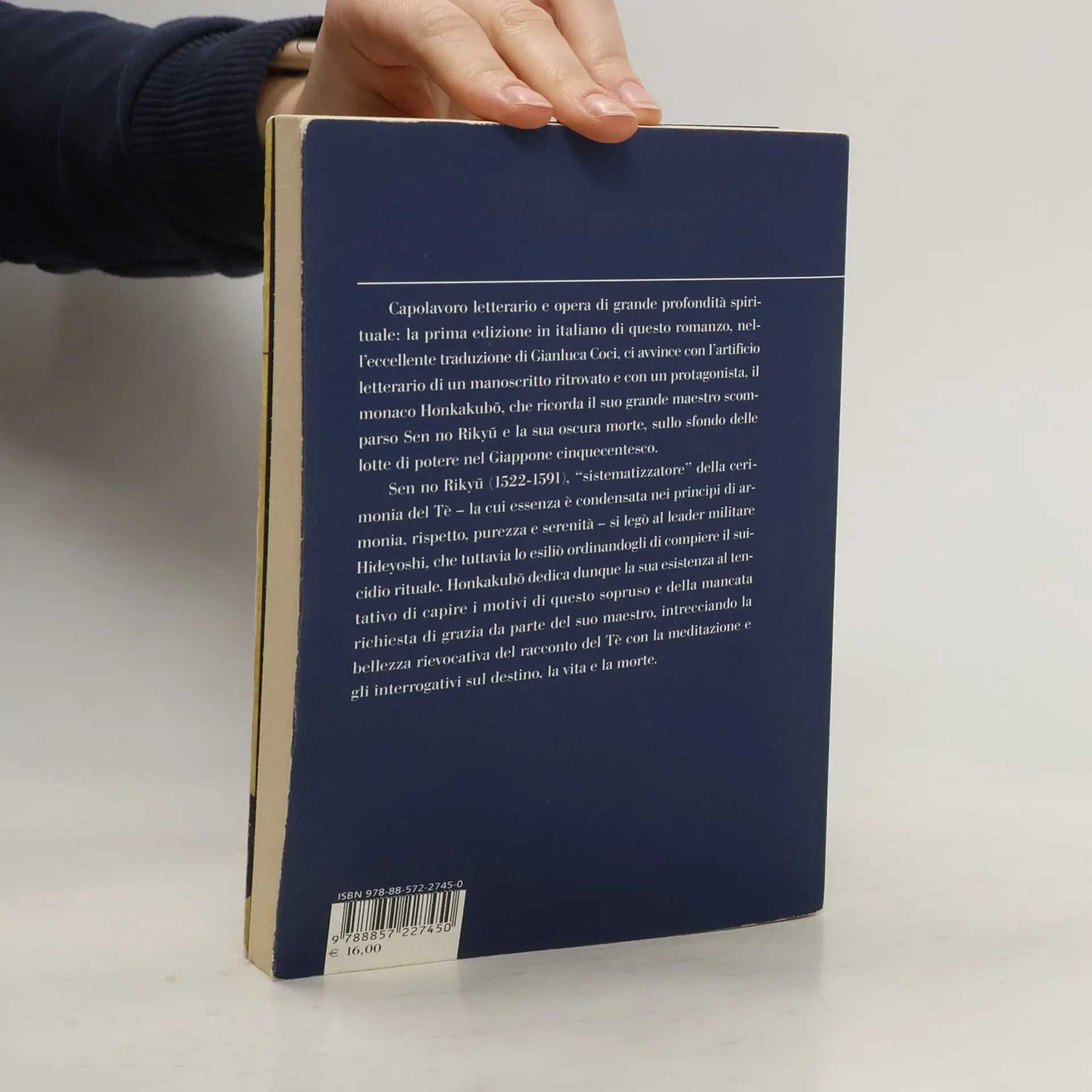 Capolavoro letterario e opera di grande profondità spirituale: la prima edizione in italiano del romanzo di Yasushi Inoue, nell’eccellente traduzione di Gianluca Coci, ci avvince con l’artificio letterario di un manoscritto ritrovato e con un protagonista, il monaco Honkakubō, che ricorda il suo grande maestro scomparso Sen no Rikyū e la sua oscura morte, sullo sfondo delle lotte di potere nel Giappone cinquecentesco.