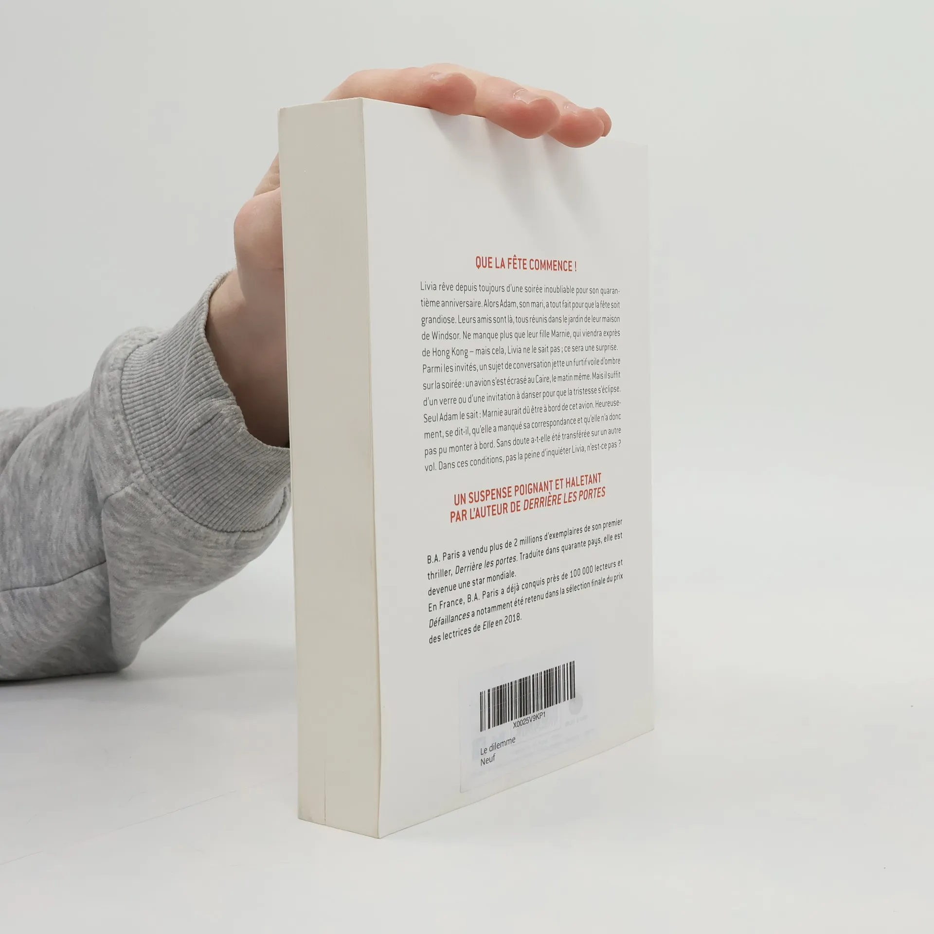 S'il parle, il la détruit.S'il se tait, il se détruit.Et vous, que feriez-vous ? Depuis toujours, Livia rêve d'une énorme soirée pour ses 40 ans ; et Adam, son mari, met tout en oeuvre pour que la fête soit inoubliable. Il s'organise pour que leur fille Marnie vienne exprès de Hong Kong – ce sera une surprise pour Livia. Mais quelques heures avant la soirée, Adam apprend que le vol dans lequel se trouvait peut-être Marnie s'est crashé. Est-ce qu'elle avait pu prendre cet avion, sachant que son vol précédent avait décollé en retard et qu'elle pensait ne pas pouvoir attraper sa correspondance ? Adam doit-il en parler à Livia, au risque de l'inquiéter pour rien ? Et pourquoi Livia semble-t-elle soulagée que Marnie ne soit pas là ? Lorsque la fête commence, chacun devra danser avec ses secrets et ses peurs. Jusqu'à ce que s'ouvre enfin le portillon du jardin et qu'une silhouette s'avance vers les invités...