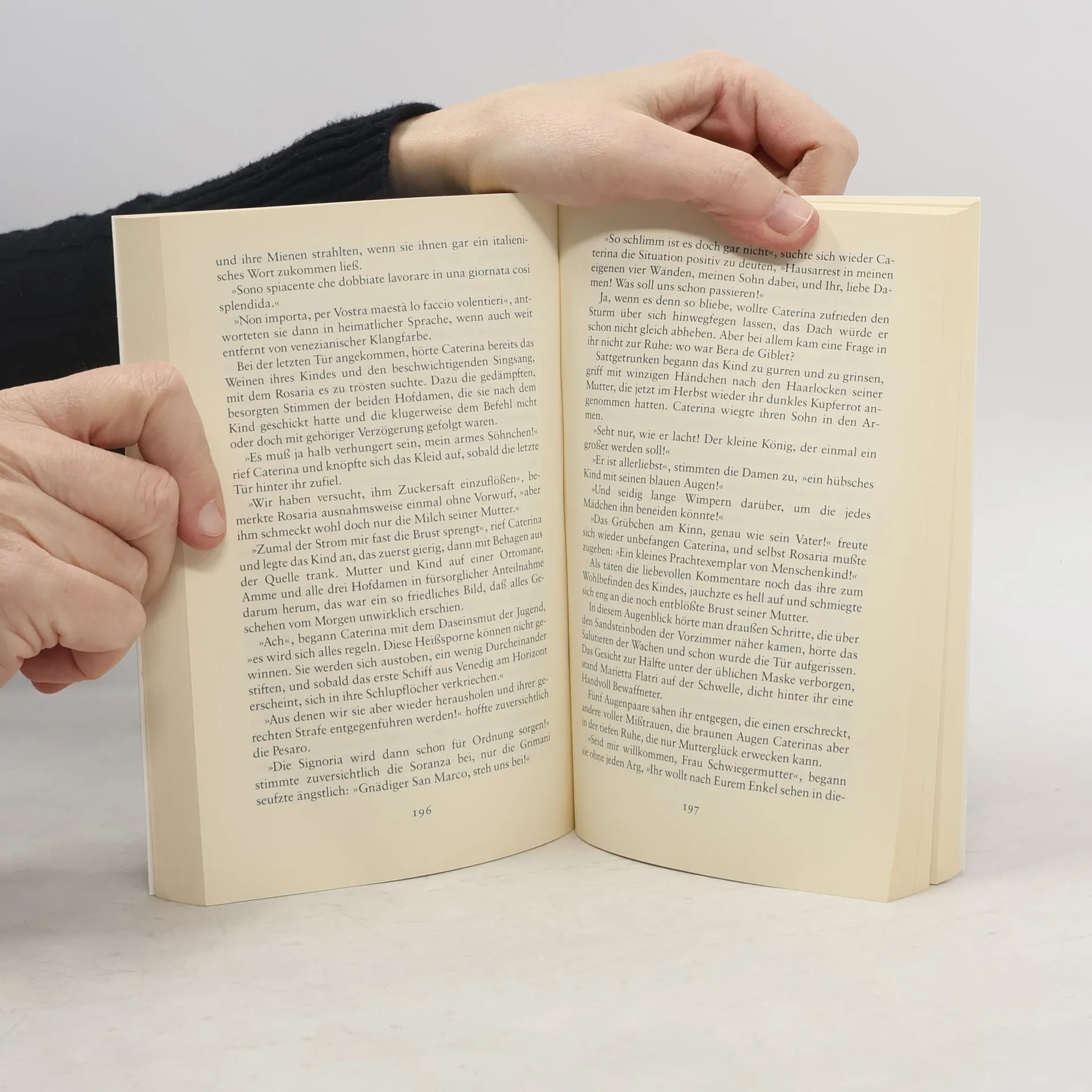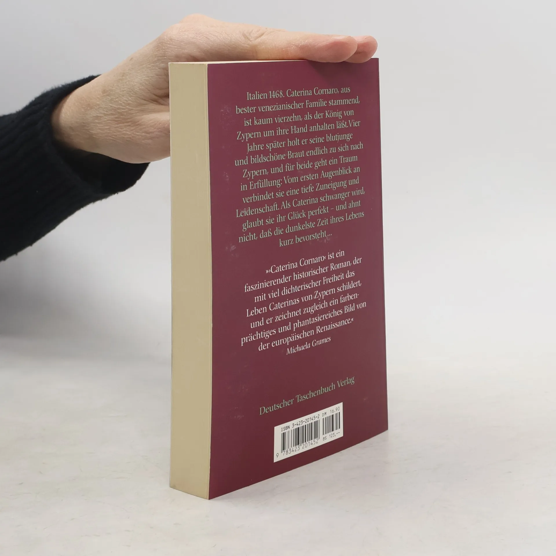 Caterina Cornaro, die letzte Königin von Zypern (1454 bis 1510). Ein Leben zwischen Glanz und Macht, Liebe und Verrat, zwischen rauschenden Festen und bitteren Demütigungen: Caterina, aus bester venezianischer Familie stammend, ist kaum vierzehn, als der König von Zypern um ihre Hand anhalten läßt. Venedig hat soeben den Scheitelpunkt seiner Macht erreicht, und eine Verbindung mit dem Osmanischen Reich erscheint machtpolitisch nur allzu sinnvoll. Vier Jahre läßt Jacques Lusignan seine blutjunge und bildschöne Braut warten, bis er sie zu sich nach Zypern holt. Für beide scheint ein Traum in Erfüllung zu gehen: Vom ersten Augenblick an verbindet sie eine tiefe Zuneigung und Leidenschaft. Als Caterina schwanger wird, glaubt sie ihr Glück perfekt.