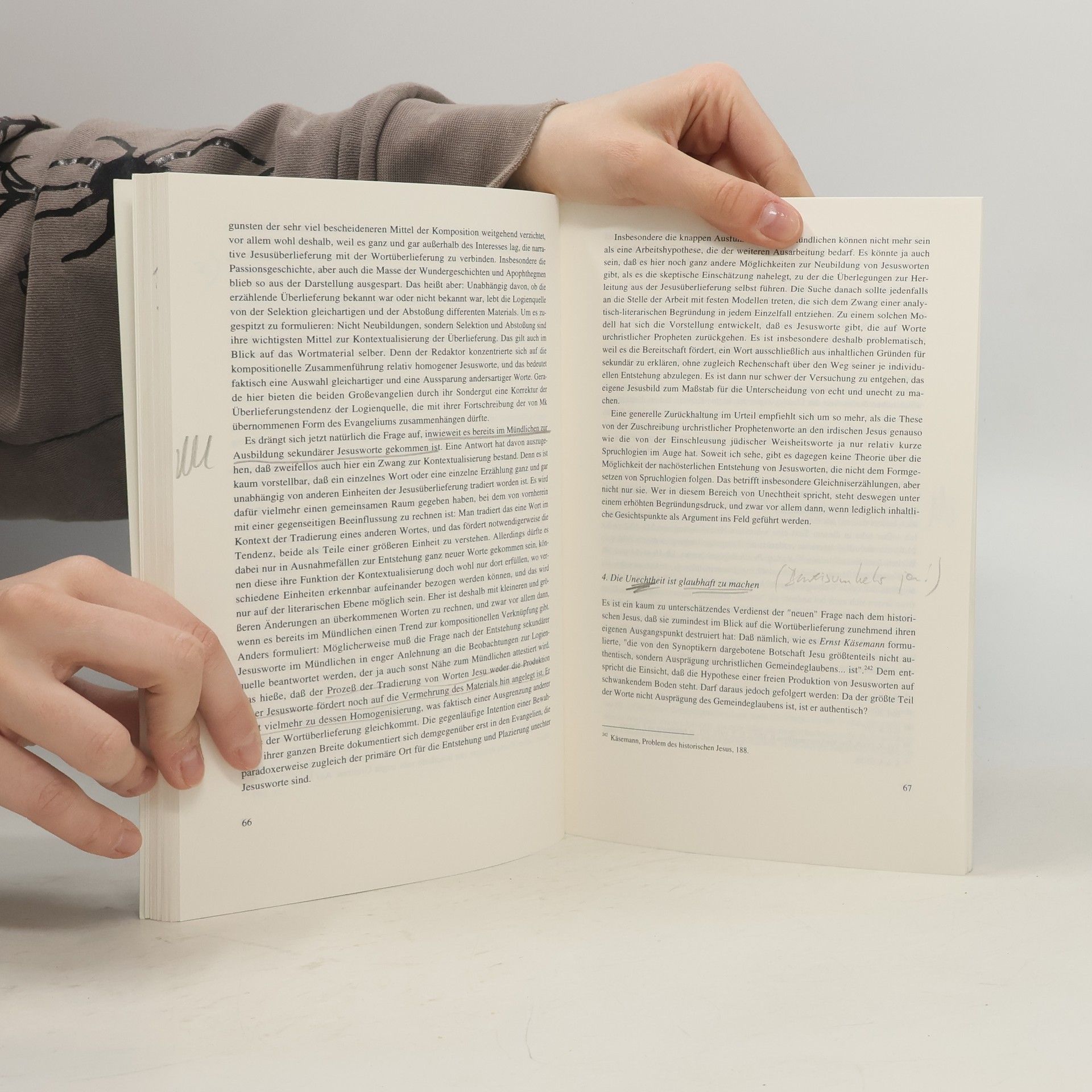 Zunehmend setzt sich in der neutestamentlichen Wissenschaft die Einsicht durch, dass das kriteriologische Modell der "neuen" Frage nach dem historischen Jesus kritisch zu bewerten ist. Der Autor spitzt die Kritik zu und entwickelt aus deren verschiedenen, z.T. disparaten Aspekten ein kontrares Verfahren fur die Arbeit mit den Quellen, das auch das Thomasevangelium in die Uberlegungen mit einbezieht. Seine Praktikabilitat wird am Beispiel von Jesu Zuwendung zu Sunderinnen und Sundern anschaulich vor Augen gefuhrt. Die Worte, die sich dazu finden, unterscheiden sich in Ton und Inhalt sehr stark. Trotzdem gelingt es, ein koharentes Bild eines zentralen "Handlungsfeldes" Jesu zu zeichnen. Es mutet Jesus auch die harten Zuge zu, die uns in Weherufen und Gerichtsworten begegnen. Es problematisiert den Trend zur Marginalisierung der Auseinandersetzung mit Pharisaern. Und es notigt zur Wiederaufnahme von Fragen der Leben-Jesu-Forschung des 19. Jahrhunderts.