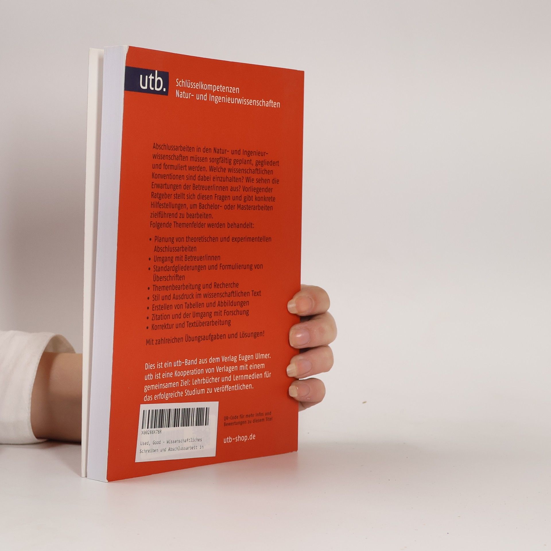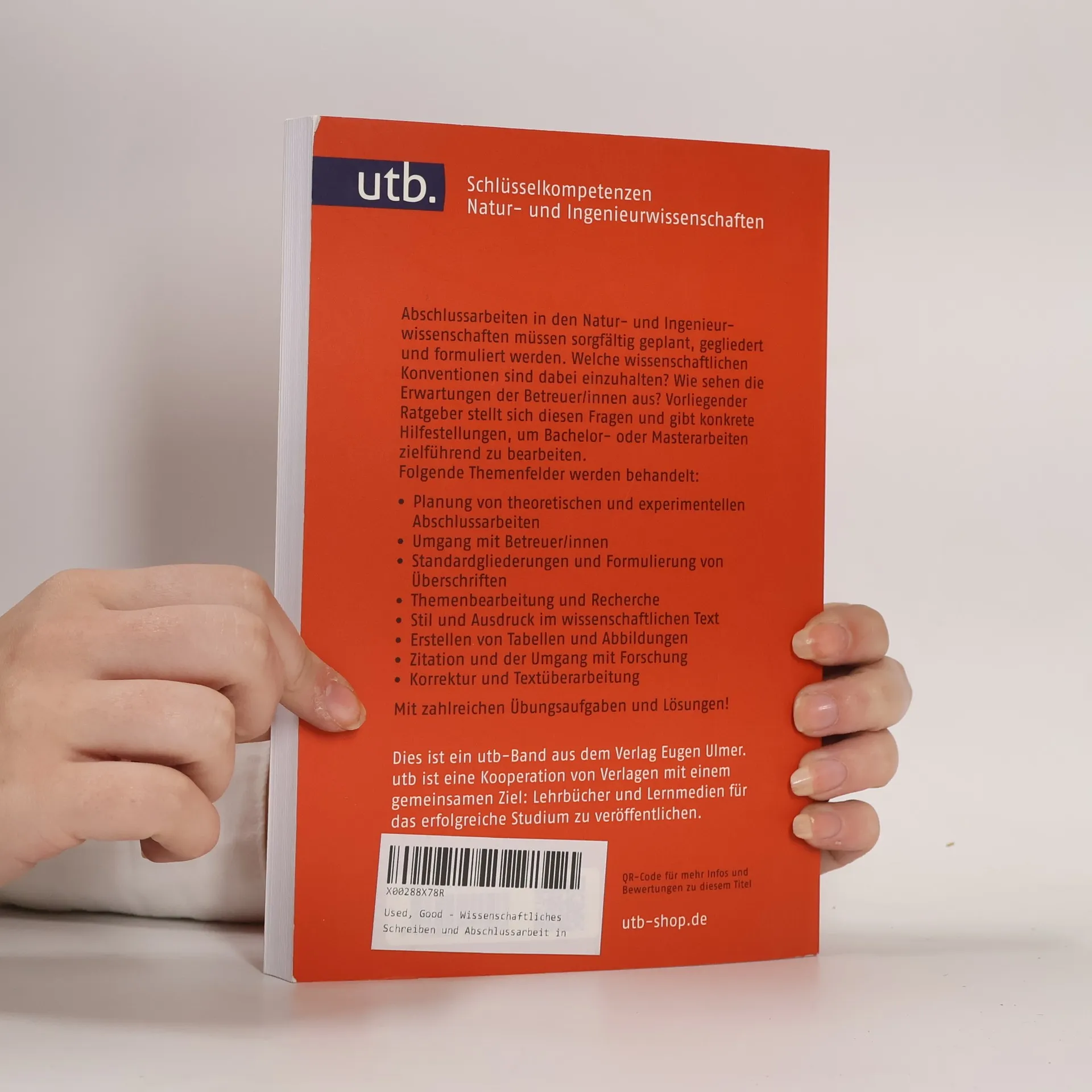 Aus der Praxis für die Praxis: Vermittlung von wissenschaftlichen Schreibkompetenzen in Naturwissenschaften und Ingenieurwissenschaften Mit Motivation und Erfolg das Studium meistern - hier erhalten Studierende einen Einblick in wissenschaftliche Schreibkonventionen von natur- und ingenieurwissenschaftlichen Disziplinen unter besonderer Berücksichtigung des Verfassens von Abschlussarbeiten. Der Band behandelt den formalen Aufbau, Ausdruck und Stil, die textliche und formale Einbindung von Quellen, die Planung eines Schreibprojekts (z. B. als Teil einer experimentellen Arbeit) sowie die Visualisierung von Abschlussarbeiten. Schreibkompetenz aus dem Schreiblabor des KIT für die Umsetzung in der eigenen praktischen Arbeit, speziell auf die Natur- und Ingenieurwissenschaften ausgerichtet. Mit separatem Teil mit Übungen von der Planung bis zum Korrekturlesen inkl. Lösungen.