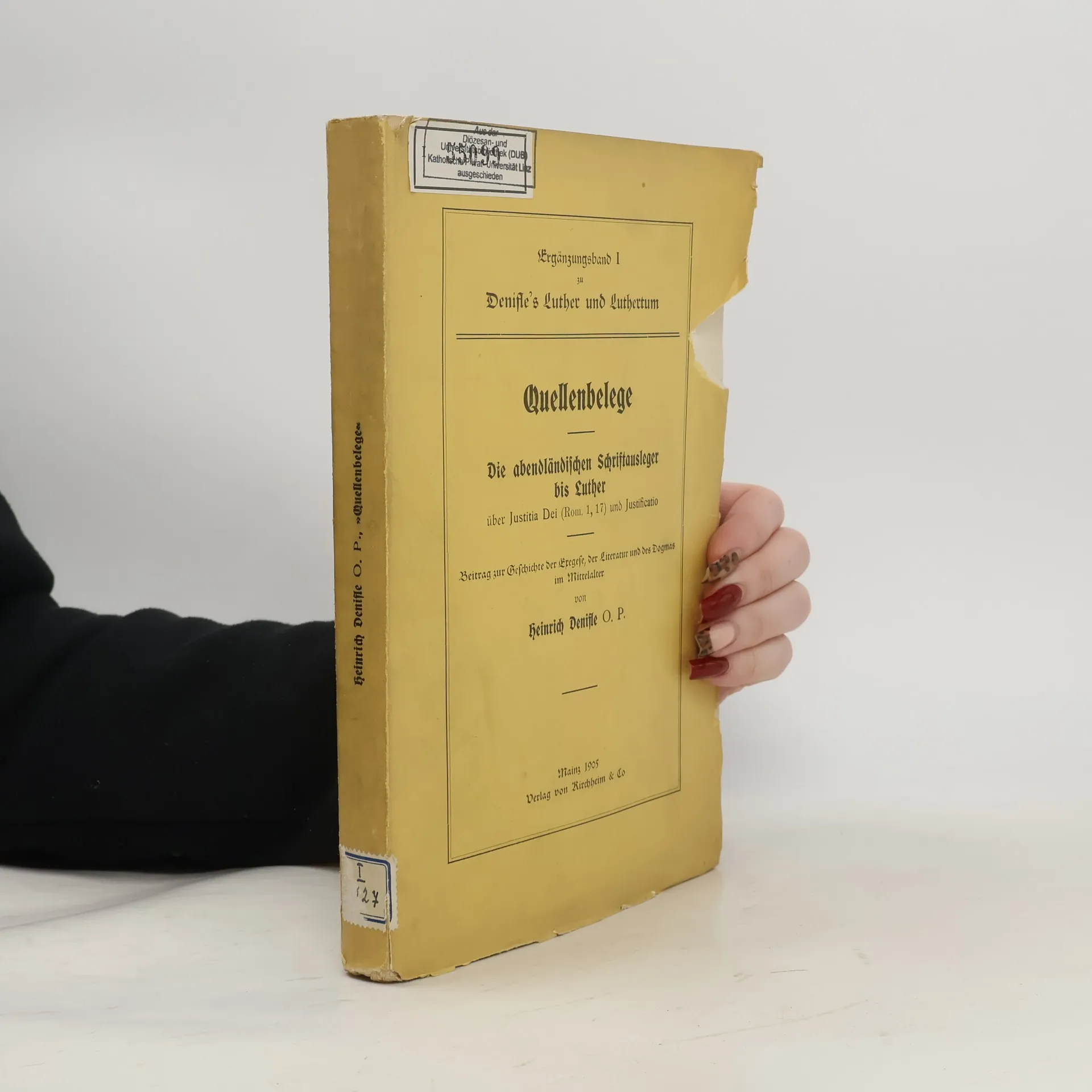 Quellenbelege. Die abendländischen Schriftausleger bis Luther über Justitia Dei (Rom. 1,17) und Justificatio, Heinrich Denifle