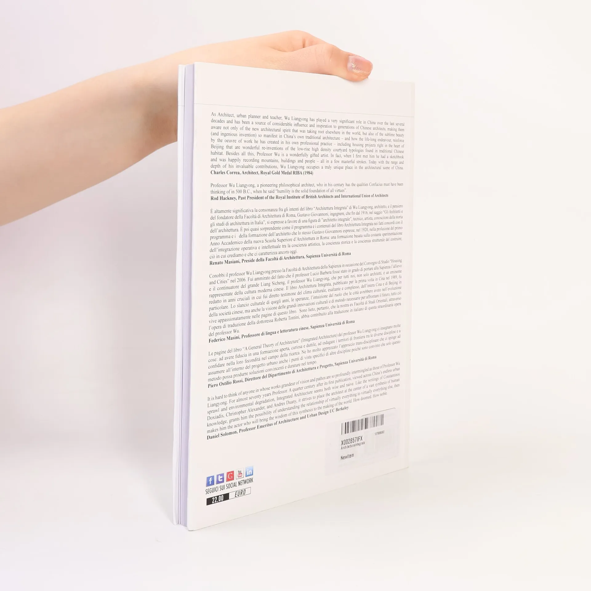 Il libro che presentiamo, Architettura Integrata è un testo storico e attuale. Fu pubblicato nel 1989 da Wu Liangyong, uno dei più infl uenti architetti e maestri di pensiero della Cina contemporanea col titolo A General Theory of Architecture. Egli è fi gura eminente della comunità internazionale degli architetti e, soprattutto, di quel gruppo di teorici dell’architettura e della città che si battono per una decisiva riforma delle concezioni, delle metodologie e delle prassi che presiedono alla costruzione e alla riqualifi cazione della metropoli contemporanea. Conobbi il professor Wu Liangyong nel 2004 nella Facoltà di Architettura della università Tsinghua di Beijing; la sua Facoltà. Egli nel 1946 – aveva 24 anni – ne fu il fondatore assieme a Liang Sicheng, il padre dei moderni studi sull’architettura cinese. Da allora – sono passati sessantasette anni – il professor Wu Liangyong mantiene il suo ruolo di fi gura centrale della comunità accademica di Beijing, ed è costante stimolo, non solo a livello nazionale, per il rinnovamento degli studi, e, soprattutto, della ricerca teorica, metodologica e operativa sull’architettura, la città, il territorio. È, dunque, una fi gura rara, che ha attraversato per intero un periodo storico che in ogni luogo del mondo è stato tumultuoso per la società e la città, ma che in Cina ha forse avuto le sue manifestazioni più drammatiche ed esaltanti; un periodo fatto di guerra, di speranze, di rivoluzioni, di slanci, di presunzioni, d’orrori, d’errori, di nuovi slanci e d’incomprimibile crescita economica; d’irreversibili metamorfosi sociali e culturali e – ciò che qui, per noi, conta di più – di travolgenti crescite urbane e trasformazioni territoriali. Nella sua fi gura minuta e gentile il suo intelletto ha resistito saldissimo alle tempeste della storia traendo dall’osservazione degli eventi e dai principi umanistici e scientifi ci della propria cultura, il continuo alimento per una rifl essione sempre più effi cace sul signifi cato dell’architettura nel mondo attuale, sul suo intreccio inestricabile con la sostanza della città; e sull’insostituibile ruolo dell’architetto – scienziato, umanista ed artista. Pochi anni dopo aver averlo conosciuto e aver iniziato ad apprendere direttamente la sua opera d’architetto e di teorico, gli proposi di tradurre in italiano un’antologia di suoi scritti, tratti dai tanti libri e saggi sull’architettura e la città pubblicati con continuità durante tutta la sua impareggiabile carriera. Egli mi rispose rilanciando: al posto dell’antologia di scritti propose di tradurre per intero, in italiano e in inglese, un libro di venti anni prima, appunto A General Theory of Architecture del 1989. Data la velocità attuale del dibattito culturale si sarebbe detto si trattasse di un libro ormai sedimentato nella storia. Compresi, invece, che si trattava di una pietra miliare per l’espressione del suo pensiero; un caposaldo da cui, probabilmente, erano scaturite le sue elaborazioni teoriche posteriori, anche quelle più recenti, pubblicate in altri fondamentali saggi, che spaziano nel vasto campo degli insediamenti umani toccando tutte le componenti dell’ambiente antropizzato (Lucio Valerio Barbera). Foreword by Lucio Valerio Barbera Translations by Anna Irene Del Monaco, Liu Jian, Ying Jin, George Michael Riddel, Roberta Tontini Afterword by Anna Irene Del Monaco
