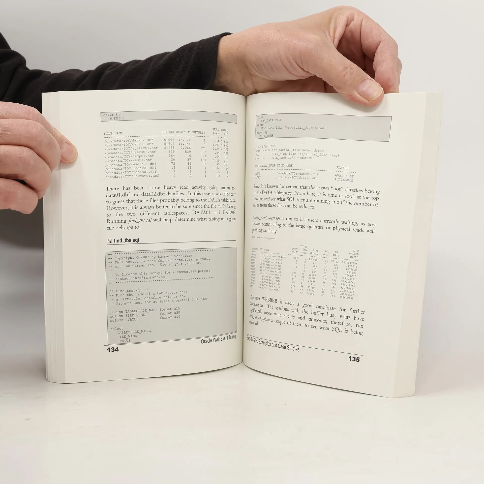 This handbook provides database administrators with clear and concise processes with which to attack tuning problems using Oracle Wait Interface. A guide is provided to demonstrate the mechanics of the Wait Interface and how to use it not only to tune database performance at the database level but also to give the statistics needed to understand problems that lie outside of the database in the SAN or the network. Techniques that apply to tuning any Oracle database from version 7 through 9i and beyond are included.
