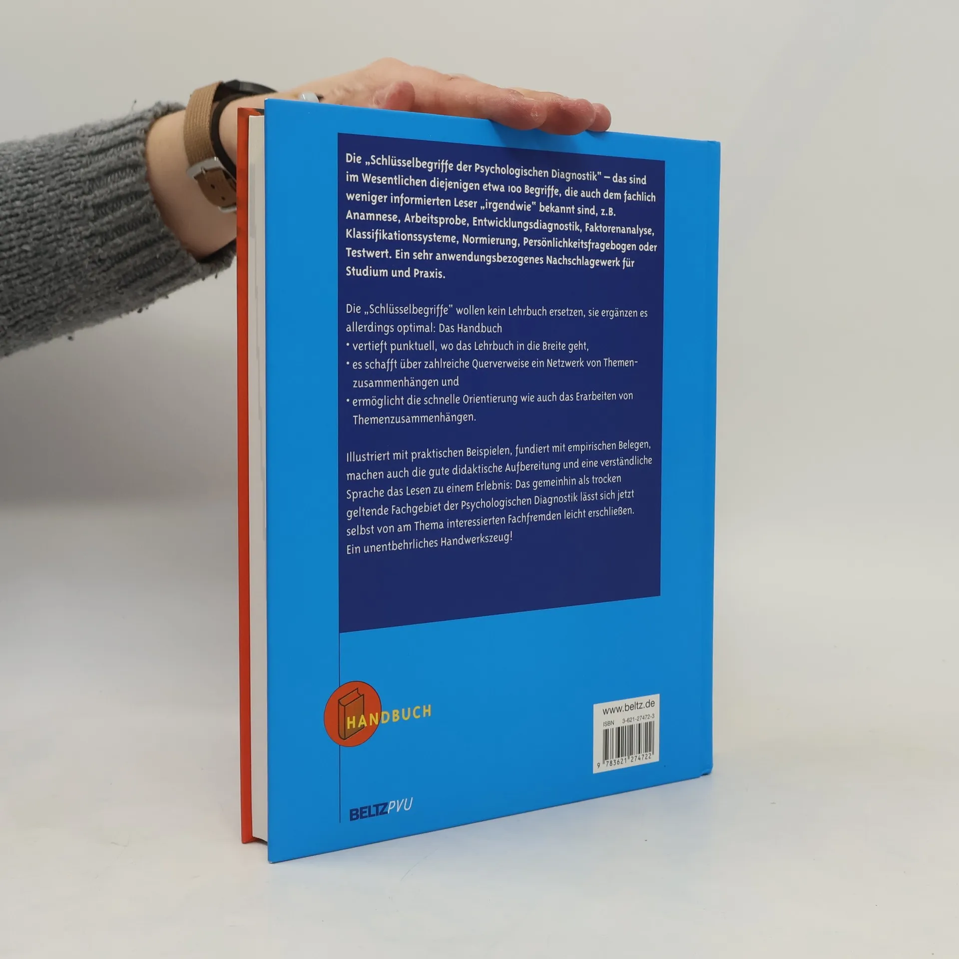 Die „Schlüsselbegriffe der Psychologischen Diagnostik“ - 100 Begriffe, die auch fachlich weniger informierten Lesern „irgendwie“ bekannt sind, z. B. Anamnese, Arbeitsprobe, Entwicklungsdiagnostik, Faktorenanalyse, Klassifikationssysteme, Persönlichkeitsfragebogen, Testwert. Ein sehr anwendungsbezogenes Nachschlagewerk für Studium und Praxis. Die „Schlüsselbegriffe“ wollen kein Lehrbuch ersetzen, sie ergänzen es allerdings optimal: Das Handbuch - vertieft punktuell, wo das Lehrbuch in die Breite geht, - es schafft über zahlreiche Querverweise ein Netzwerk von Themenzusammenhängen und - ermöglicht die schnelle Orientierung wie auch das Erarbeiten von Themenzusammenhängen. Illustriert mit praktischen Beispielen, fundiert mit empirischen Belegen, machen auch die gute didaktische Aufbereitung und eine verständliche Sprache das Lesen zu einem Erlebnis: Das gemeinhin als trocken geltende Fachgebiet der Psychologischen Diagnostik lässt sich jetzt selbst von Fachfremden leicht erschließen. Ein unentbehrliches Handwerkszeug!