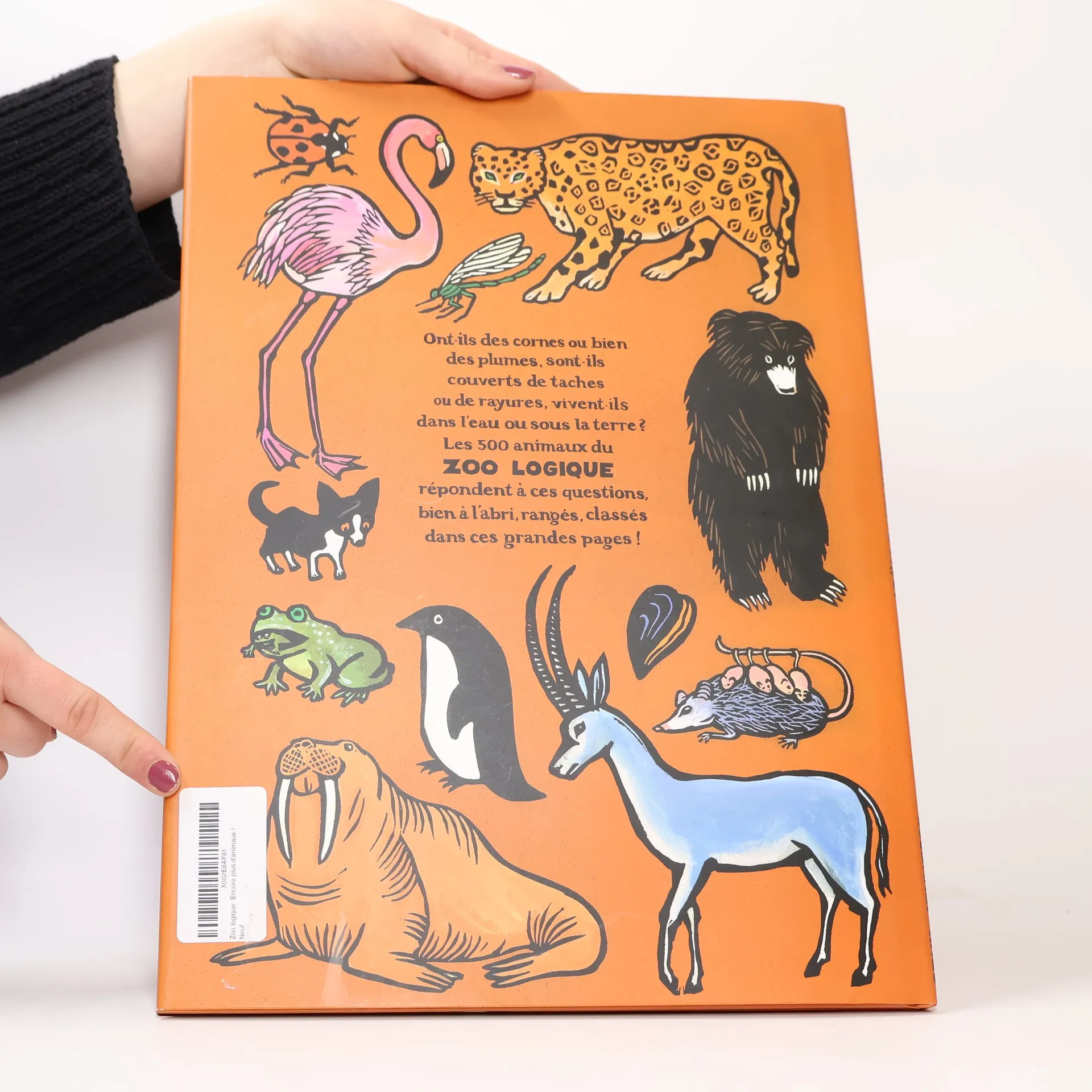 Ont-ils des cornes ou bien des plumes, sont-ils couverts de taches ou de rayures, vivent-ils dans l'eau ou sous la terre ? Les 500 animaux du Zoo logique répondent à ces questions, bien à l'abri, rangés, classés dans ces grandes pages ! (4e de couverture)