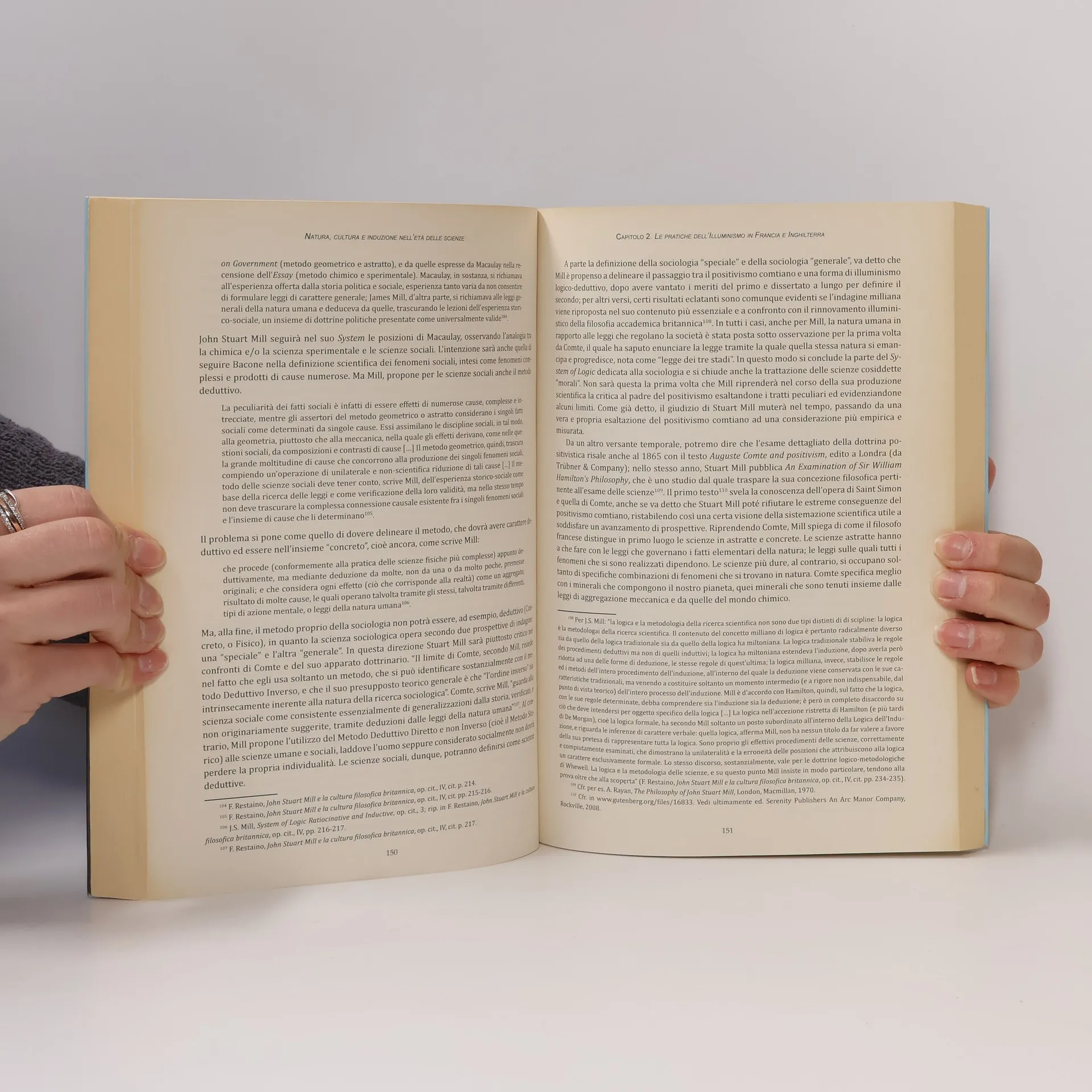 Il testo vuole testimoniare della piena partecipazione delle scienze sociali alla storia delle scienze, in un quadro di sviluppo che prevede la ricezione in Europa della riforma della filosofia naturale attuata da Francesco Bacone nel XVII secolo e recepita nel principio dell’induzione da Auguste Comte in Francia e da Herbert Spencer in Inghilterra. I temi della fondazione delle scienze sono quindi al centro dell’opera di ricostruzione di eventi cruciali. L’investigazione della natura e del mondo empirico da parte dell’uomo sociale si svolge attraverso i secoli nei modi prescritti dalla filosofia naturale, laddove la tradizione antica e medioevale lasciava irrisolti alcuni problemi di tipo finalistico e vitalistico. Nel Cinquecento e soprattutto nel Seicento assistiamo ad una certa ripresa di tematiche suscitate dall’atomismo e dal meccanicismo in concomitanza del declino della fisica aristotelica. Nel secolo di Cartesio, che rifiutava l’atomismo, la ricerca di una teoria della materia dominò la scena nonché quella del movimento rettilineo uniforme che determinava lo stato di quiete dei corpi, come si nota nei Principia philosophiae del 1644 (pubblicati in francese nel 1647). Il principio che la conoscenza derivasse soltanto dall’interpretazione e dal commento dei testi antichi, sotto una certa forma di principium potestatibus, fu gradualmente sostituito da una filosofia della storia del progresso incarnata nell’ambito della conoscenza scientifica dal metodo sperimentale. La Rivoluzione scientifica culminò con l’applicazione di questa metodologia nella filosofia naturale, nelle scienze della vita (biologia, anatomia, zoologia, botanica), nella medicina e nella chimica, nella fisica (ottica, magnetismo, termologia, elettricità) nonché nella scoperte di William Harvey sulla pressione del sangue, di Evangelista Torricelli sulla pressione dell’atmosfera, Francesco Redi sui corpi viventi e Isaac Newton sulla natura della luce. In particolare, Newton seppe sintetizzare la tradizione dell’empirismo inglese, che va da Ruggero Bacone e Guglielmo di Ockham a John Locke, suo contemporaneo. Il contesto di sviluppo delle idee illuministiche e del positivismo in Francia segnò l’evolversi in Occidente della riflessione più matura sulle scienze e sulle scienze sociali nei vari contesti storico-concreti dove la filosofia naturale poté essere interpretata alla luce di nuove scoperte, le quali dovevano segnare, a loro volta, il momento incisivo di una azione progressiva dell’uomo condotta sulla natura stessa e, in modo tale da fare risaltare, infine, il passaggio al mondo della cultura del progresso. Come è noto, l’idea del progresso sta alla base di tante teorizzazioni della società a partire dal XVIII secolo. Per questo, basterà anche ricordare ciò che Kant pensasse dell’ Illuminismo quando affermava: “L’illuminismo è l’uscita dell’uomo dallo stato di minorità che egli deve imputare a se stesso. Minorità è l’incapacità di servirsi del proprio intelletto senza la guida di un altro. Questa minorità è imputabile a se stesso, se la causa non dipende dalla mancanza di intelligenza ma da mancanza di decisione e del coraggio di far uso del proprio intelletto senza essere guidati da un altro. Sapere aude! Abbi il coraggio di servirti della tua propria intelligenza. È questo il motto dell’illuminismo.” La stessa identificazione data da Auguste Comte nel suo Cours all’uso del termine ‘positivo’ cercava di spiegare come si potesse “considerare tutti i fenomeni come assoggettati a leggi naturali ed invariabili, la scoperta e la riduzione al minor numero possibile delle quali è il fine di tutti i nostri sforzi, considerando inoltre come assolutamente inaccessibile e vuota di senso la ricerca di quelle che si chiamano cause, sia cause prime che quelle finali” (Cours de philosophie positive, I). Al cospetto del nuovo modo di pensare e di operare i temi fondanti dell’intervento umano sulla natura circolavano in concomitanza della diffusione dei saperi scientifici, di quei saperi che si erano manifestati quindi in forma di pratiche illuministiche, cioè di un insieme di ragioni teoriche e pratiche poste in relazione tra loro a beneficio del mondo sociale circostante. Gradualmente anche il tema della rappresentazione dei fenomeni della vita si rapporta allo sviluppo della nuova filosofia naturale, tenendo conto del fatto che le scienze raggiungono uno stadio positivo nonché astratto e concreto (v. Herbert Spencer, The Classification of the Sciences). Ciò sarebbe sufficiente per spiegare il nesso esistente tra le scienze e i fenomeni vitali organici, cioè quel collegamento tra lo sviluppo filosofico e scientifico e il progresso dell’ambiente natura-le e sociale.