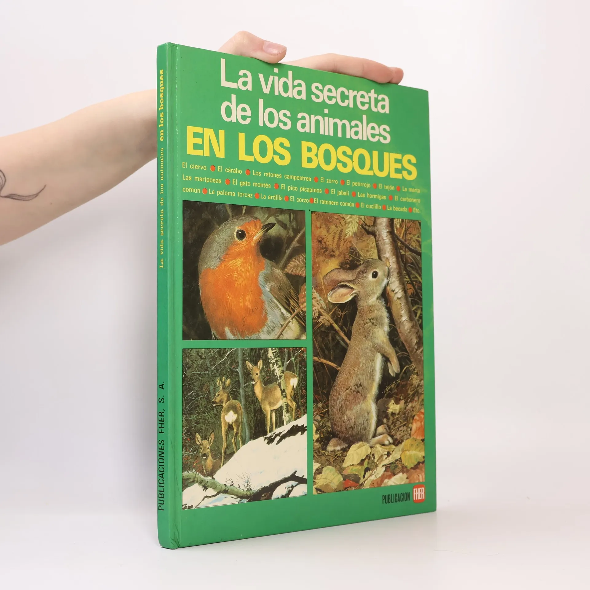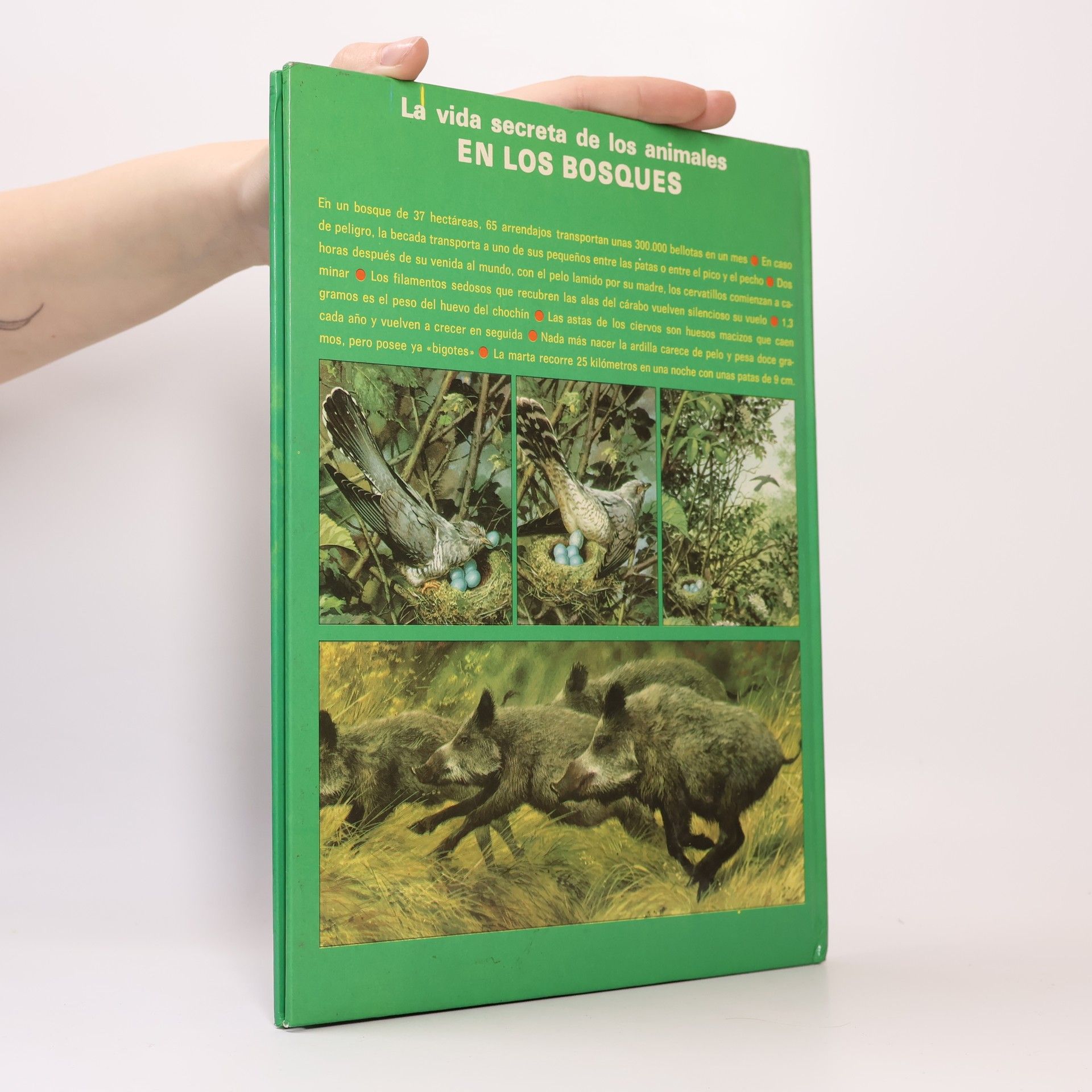 Introduces animals which live in forests, including wren, wild boar, marten, owl, fox, and deer.