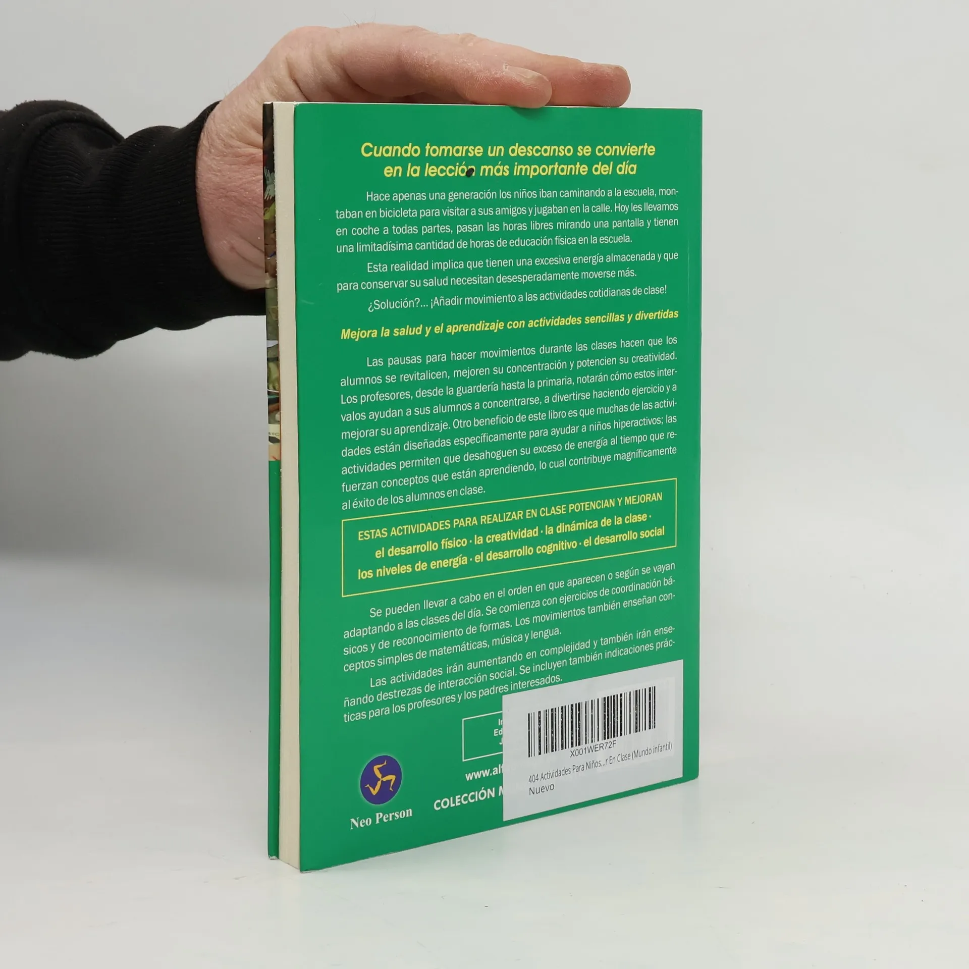 Hace una generación, los niños caminaban a la escuela, montaban en bicicleta y jugaban en la calle. Hoy, pasan horas frente a pantallas y tienen escasas horas de educación física. Esta realidad genera un exceso de energía en los niños, quienes necesitan moverse más para mantener su salud. La solución es añadir movimiento a las actividades diarias en clase. Incorporar pausas activas revitaliza a los alumnos, mejora su concentración y potencia su creatividad. Los profesores, desde la guardería hasta la primaria, notarán que estos intervalos ayudan a los estudiantes a concentrarse, disfrutar del ejercicio y mejorar su aprendizaje. Muchas actividades están diseñadas para niños hiperactivos, permitiéndoles liberar energía mientras refuerzan conceptos académicos, contribuyendo a su éxito en clase. Estas actividades fomentan el desarrollo físico, la creatividad, la dinámica de clase, los niveles de energía, el desarrollo cognitivo y social. Se pueden realizar en el orden que se desee, comenzando con ejercicios de coordinación y reconocimiento de formas, y avanzando hacia conceptos de matemáticas, música y lengua. Incluye indicaciones prácticas para educadores y padres. Con suficientes juegos para todo el año, este enfoque anima a los niños a levantarse y a tomar conciencia de sus cuerpos y mentes.