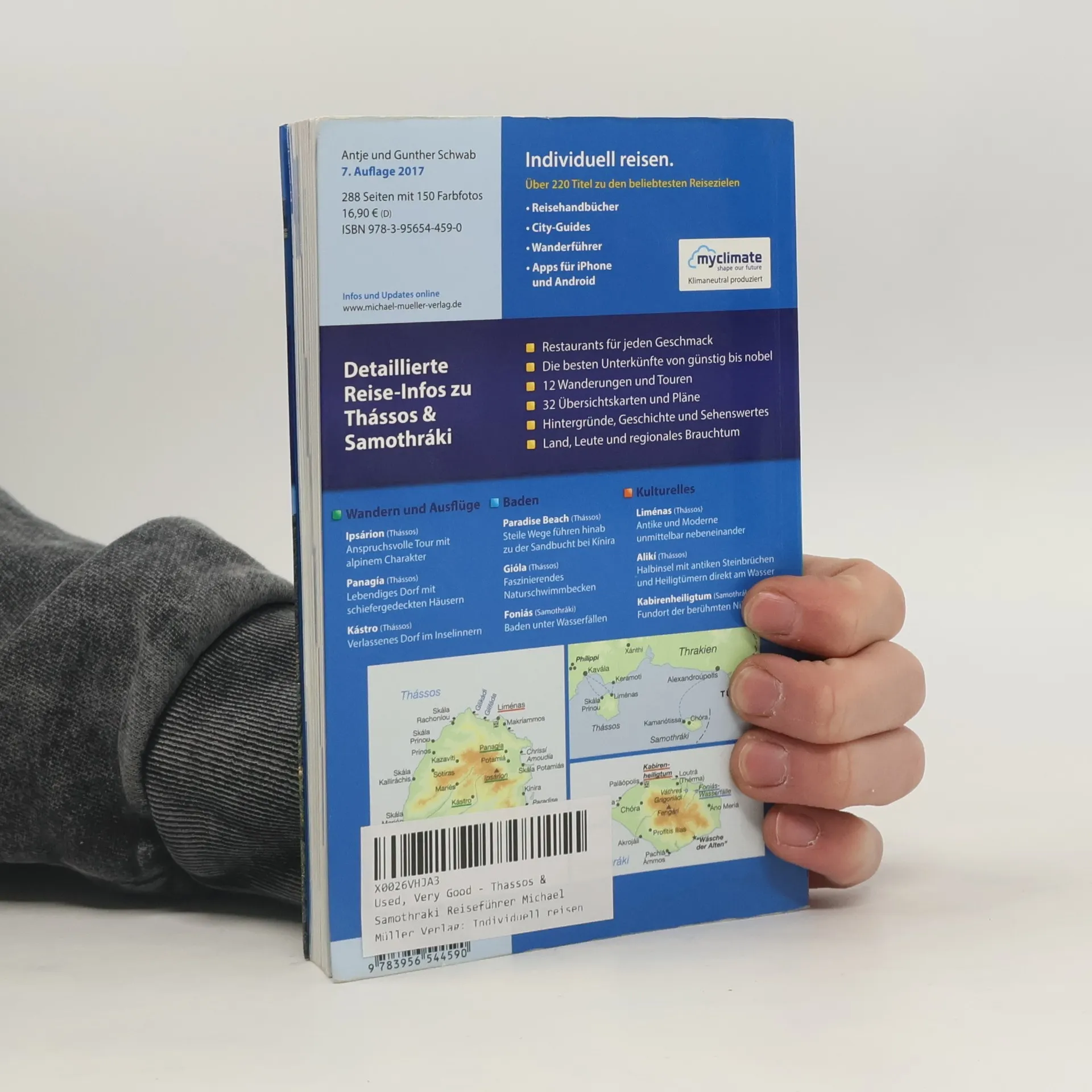 Die im Norden der Ägäis gelegenen Inseln werden oft mit grünen Smaragden verglichen. Mit ihren kristallklaren Bächen, ihren steilen Wasserfällen, den dichten Wäldern und riesigen Farnen erinnern insbesondere die Nordhälften der Inseln fast an tropische Urwaldlandschaften. Während das ruhige Samothraki besonders von eingefleischten Griechenlandfans besucht wird, magnetisiert das quirlige Thassos Urlauber aller Couleur. Badefans kommen ebenso auf ihre Kosten wie Wanderfreunde, denn neben vielen feinsandigen Stränden haben die Inseln Berge mit durchaus alpinem Charakter zu bieten. Antje und Gunther Schwabs Reisehandbuch enthält Wandervorschläge, weist auf die besten Bademöglichkeiten hin, bietet Tipps zum Übernachten, Essen und Trinken und gibt Anregungen für ein aufregendes Nachtleben. Die Palette reicht vom einfachen Privatzimmer bis zum Luxushotel und von der schlichten Dorftaverne bis zum Feinschmeckerrestaurant.