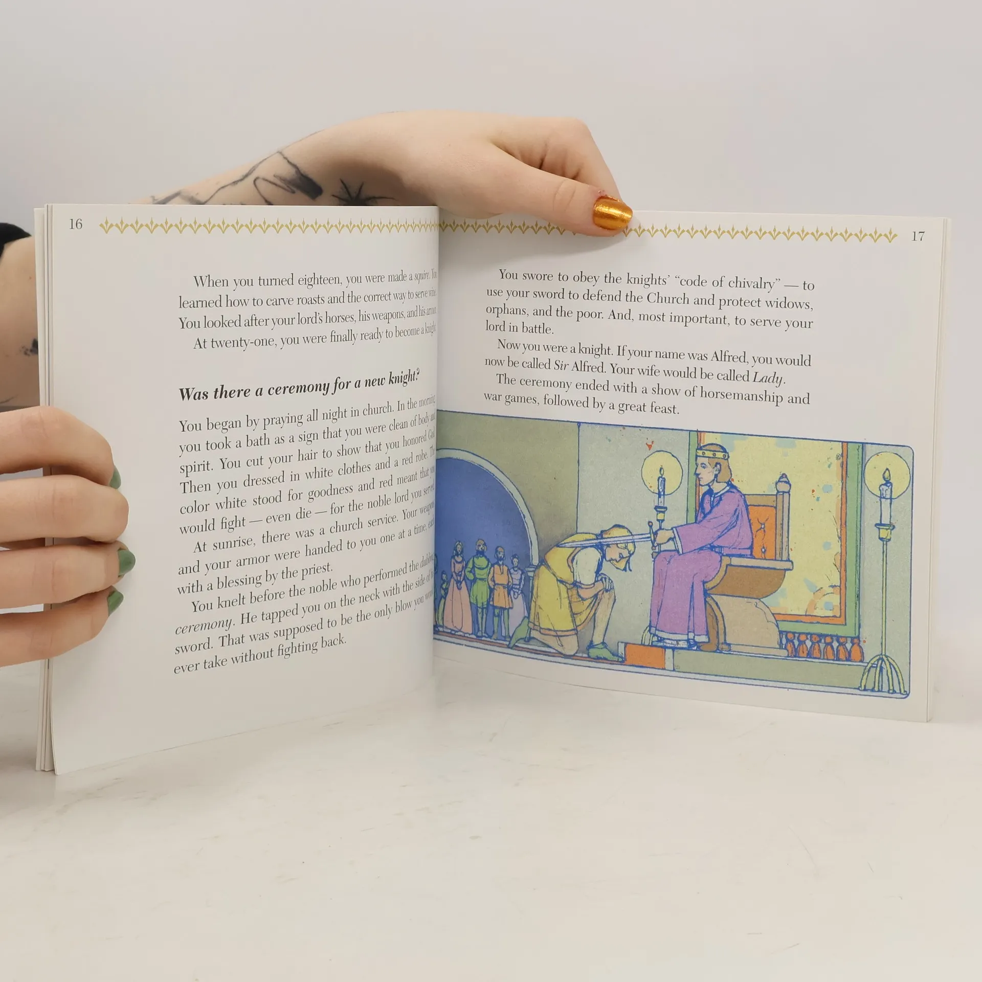 Written in question-and-answer format, provides a look at life in thirteenth century England by discussing how people dressed, what they ate, how a castle was guarded, and more. Original.