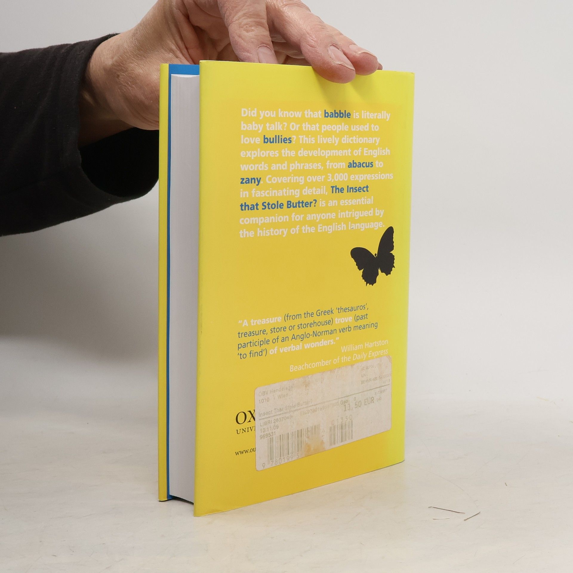 Drawing on Oxford's unrivalled dictionary research program and language monitoring, this fascinating volume captures the often odd and unexpected stories behind many of our most curious expressions, offering a rich account that far exceeds what can be found in a general dictionary.Indeed, this alphabetically organized resource contains a wealth of information on the history of English words, in a delightful roadmap tracing the curious twists and turns that words take as their meanings evolve over the centuries. We learn, for instance, that "abracadabra," just a funword said by magicians today, was once believed to actually be a magic word that was supposed to be a charm against fever and was often engraved on an amulet worn around the neck. And we also discover the curious history of the word "ache," whose noun form was once pronounced "aitch" and whose verbform was spelled "ake," while the modern word is spelled like the old noun but pronounced like the old verb. The entries include the first known use of a word along with examples that illustrate the many faces of the particular word or phrase. For instance, under "bunny," which was originally a termof endearment (and only later a small rabbit), the editor also discusses "bunny boiler" (a woman who acts vengefully after having been spurned), which refers to the Glenn Close character in Fatal Attraction . Also featured are almost 20 special panels that cover expressions common in English butdrawn from other languages, such as "coffee," "sugar," and "candy" from Arabic or "booze," "brandy," and "gin" (Dutch).The Insect that Stole Butter? is a must-have volume for anyone who loves language and enjoys the strange and singular tales of the history of words.