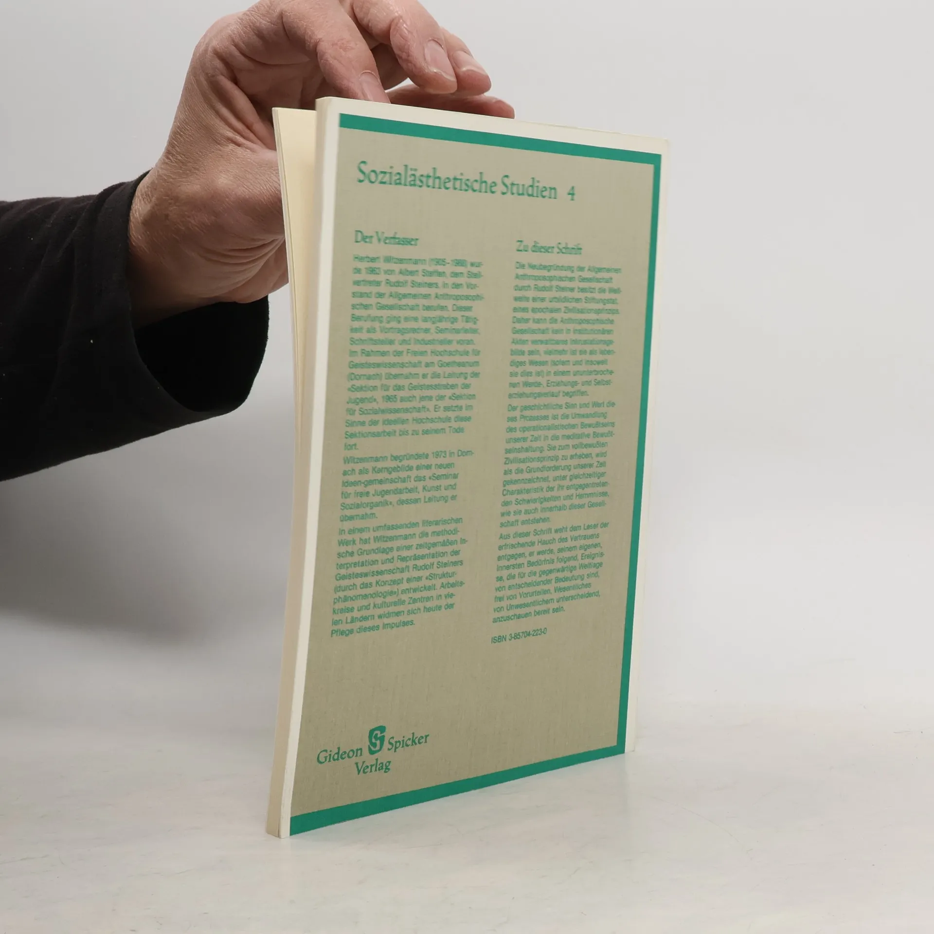 Der Urgedanke Rudolf Steiner Zivilisationsprinzip und die Aufgabe der Anthroposophischen Gesellschaft Zu dieser Schrift Die Neubegründung der allgemeinen Anthroposophischen Gesellschaft durch Rudolf Steiner besitzt die Weltweite einer urbildlichen Stiftungstat, eines epochalen Zivilisationsprinzips. Daher kann die Anthroposophischen Gesellschaft kein in institutionären Akten verwaltbares Inkrustationsgebilde sein, vielmehr ist sie als lebendiges Wesen (sofern und insoweit sie dies ist) in einem ununterbrochenen Werde-, Erziehungs- und Selbsterziehungsverlauf begriffen. Der geschichtliche Sinn dun Wert dieses Prozesses ist die Umwandlung des operationalistischen Bewusstseins unserer Zeit in die meditative Bewusstseinshaltung. Sie zum vollbewussten Zivilisationsbewusstsein zu erheben, wird als die Grundforderung unserer Zeit gekennzeichnet, unter gleichzeitiger Charakteristik der ihr entgegentretenden Schwierigkeiten und Hemmnisse, wie sie auch innerhalb dieser Gesellschaft entstehen. Aus dieser Schrift weht dem Leser der erfrischende Hauch des Vertrauens entgegen, er werde seinem eigenen innersten Bedürfnis folgend, Ereignisse, die für die gegenwärtige Weltlage von entscheidender Bedeutung sind, frei von Vorurteilen, Wesentliches von Unwesentlichem unterscheiden, anzuschauen bereit sein.