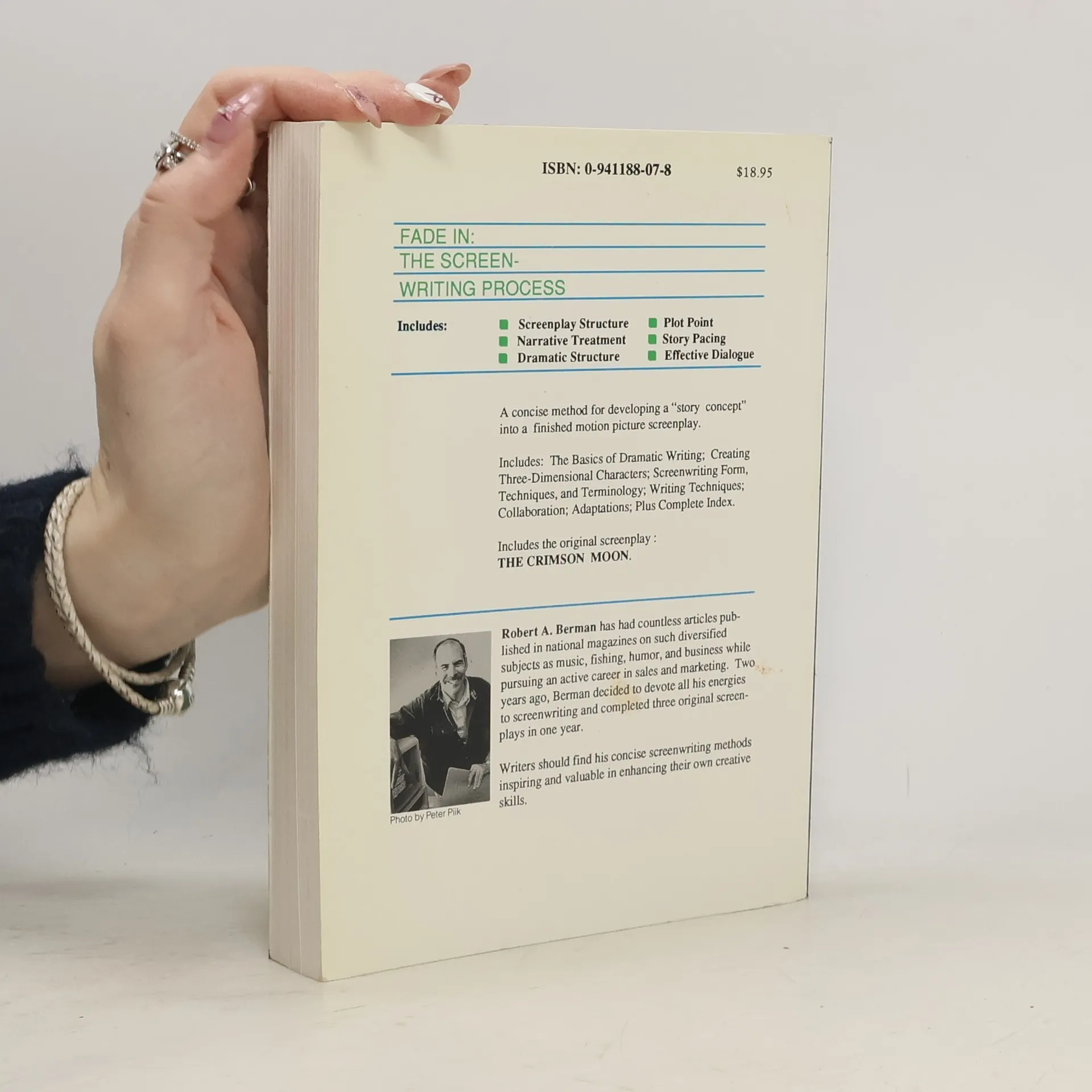 Fade In is a concise, step-by-step method for developing a "story concept" into a finished screenplay. Used by professionals and universities around the world, this book covers the basics of dramatic writing; creating characters; screenplay structure, techniques and terminology.