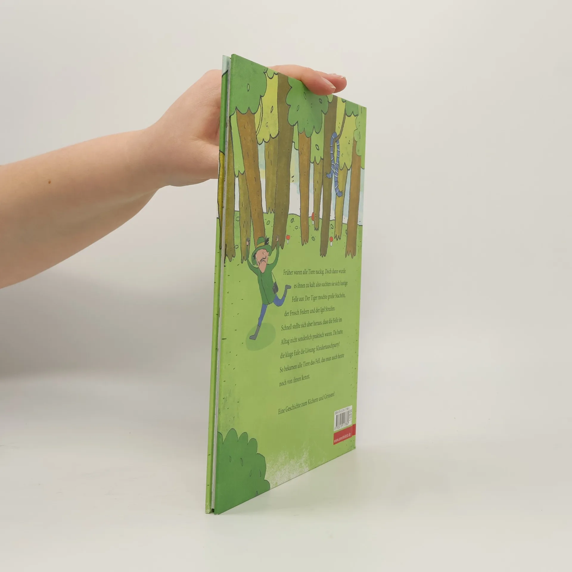 Wie die Tiere zu ihrem Fell kamen - ein Bilderbuch zum Kichern und Grinsen! Früher waren alle Tiere nackig. Doch irgendwann wurde es ihnen zu kalt. Also liefen die Tiere zum Biber und ließen sich von ihm lustige Felle nähen: Der Tiger mochte große Stacheln und der Frosch Federn. Aber schnell stellte sich heraus, dass die Felle im Alltag nicht sonderlich praktisch waren. Da hatte die kluge Eule eine Idee: Kleidertauschparty! So bekamen alle Tiere das Fell, das man auch heute noch von ihnen kennt.