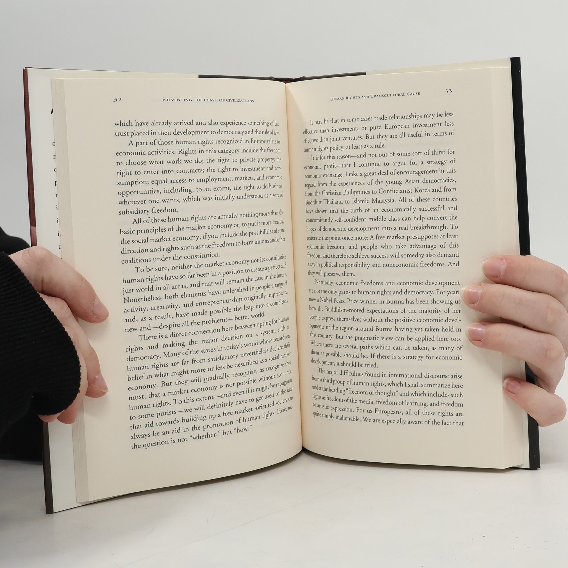 The President of the Federal Republic of Germany, Roman Herzog, and four internationally renowned scholars from different cultural backgrounds and academic disciplines argue about ways to prevent the scenario of a clash of civilizations from becoming reality. Recognizing that scenario as an intellectual projection with considerable influence on policy-makers across the world, they agree on the necessity to mobilize ideas of cooperation as countervailing forces against mindsets of conflict and violence; to respect the diversity of cultures, but avoid moral relativism; to recognize the danger of fundamentalist instrumentalization of religion for purposes of political power; to cope with economic and social disequilibria that may lead to eruptions of conflict and violence; and to focus on commonalities between cultures as a strategy of peace in a globalized world.